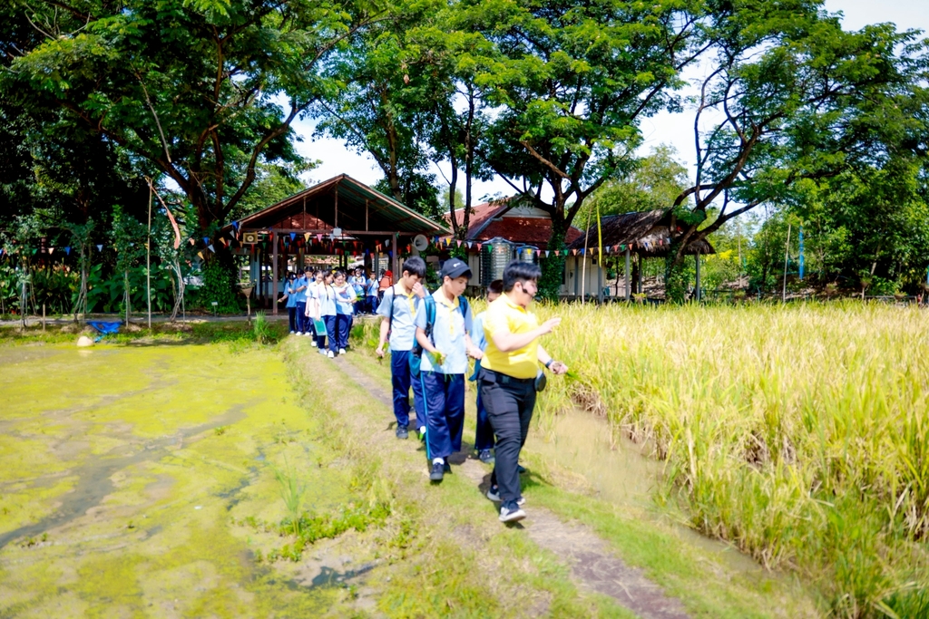 บรรยากาศวันพุธที่ 17 กันยายน 2568 เต็มไปด้วยรอยยิ้ม และความสนุกสนาน เมื่อคณะนักเรียน จากโรงเรียนกรพิทักษ์ศึกษา กทม. และโรงเรียนทรงวิทยา จ.สมุทรปราการ รวมกว่าหลายร้อยชีวิต ได้เดินทางมาเปิดประสบการณ์เรียนรู้นอกห้องเรียน ณ พิพิธภัณฑ์การเกษตรเฉลิมพระเกียรติฯ จ.ปทุมธานี โดยผ่านกิจกรรมโครงการส่งเสริมการเรียนรู้เกษตรเศรษฐกิจพอเพียง ในรูปแบบหลักสูตร “นวัตกรรมของพ่อ” และหลักสูตร “วิถีเกษตรของพ่อ” เริ่มต้นกิจกรรมการเข้าชมพิพิธภัณฑ์ป่าดงพงไพร เรียนรู้ถึงการดูแลรักษาทรัพยากรธรรมชาติ และสิ่งแวดล้อม พร้อมทั้งศึกษาระบบนิเวศในป่ากลางวัน และป่ากลางคืน ต่อด้วยเข้าชมภาพยนตร์แอนิเมชัน 3 มิติ จากนั้นสนุกกับการทำงานร่วมกันเป็นทีมในกิจกรรมสร้างสรรค์ความคิด นอกจากนี้ยังได้เข้าชมพิพิธภัณฑ์กลางแจ้ง ตะลุยเดินชมฐานการเรียนรู้เกษตรพอเพียงเมือง พื้นที่ต้นแบบการทำเกษตรที่มีทรัพยกรจำกัด ฐานการเรียนรู้วิถีเกษตรไทย 4 ภาค และฐานการเรียนรู้บ้านดินบ้านฟาง รวมถึงการลงมือฝึกปฏิบัติการขยายพันธุ์พืช(ควบแน่น) และนาโยนกล้า ที่สามารถนำไปปรับประยุกต์ใช้ได้จริง อีกทั้งยังเป็นการสร้างจิตสำนึกที่ดีในการทำเกษตรในกับผู้ที่เข้าร่วมกิจกรรมอีกด้วย หน่วยงานใดที่สนใจเข้าร่วมเรียนรู้ในรูปแบบหมู่คณะ สามารถดูหลักสูตรต่างๆได้ที่ https://www.wisdomking.or.th/views/course/ สอบถามรายละเอียด 094-649-2333 087-359-7171 02-529-2212 หรือ www.wisdomking.or.th facebook: wisdomkingmuseum และ Line ID: @wisdomkingmuseum