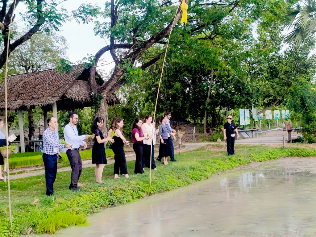 วันพฤหัสบดีที่ 19 มีนาคม 2569 บรรยากาศการเรียนรู้ที่เต็มไปด้วยความน่าสนใจ คณะจากสถาบันการต่างประเทศเทวะวงศ์วโรปการ กระทรวงการต่างประเทศ กทม. นำนักการทูตชาวต่างประเทศ เข้าร่วมโครงการส่งเสริมการเรียนรู้เกษตรเศรษฐกิจพอเพียง เริ่มต้นด้วยการเรียนรู้พระอัจฉริยภาพพระบาทสมเด็จพระเจ้าอยู่หัว รัชกาลที่ 9 ผ่านการชมนิทรรศการภายในพิพิธภัณฑ์ในหลวงรักเรา ไม่ว่าจะเป็นนิทรรศการหลักการทรงงาน นิทรรศการวิถีเกษตรของพ่อ นิทรรศการตลาดเก่าชาวเกษตร ก่อนพาทุกคนเข้าชมภาพยนตร์แอนิเมชัน 3 มิติ จากนั้นยังได้เข้าชม และเรียนรู้ไปในฐานเรียนรู้พิพิธภัณฑ์กลางแจ้งเส้นทางนวัตกรรมเกษตรเศรษฐกิจพอเพียง เรียนรู้การพึ่งพาตนเองด้านที่อยู่อาศัย และยังได้ลงมือปฏิบัติการทำนาโยนกล้า ก่อนที่จะเดินทางกลับ สำหรับหน่วยงานที่สนใจเข้าทำกิจกรรมในรูปแบบหมู่คณะ สามารถดูหลักสูตรต่างๆได้ที่ https://www.wisdomking.or.th/views/course สอบถามรายละเอียด 094-649-2333 087-359-7171 02-529-2212 หรือ www.wisdomking.or.th facebook: wisdomkingmuseum และ Line ID: @wisdomkingmuseum