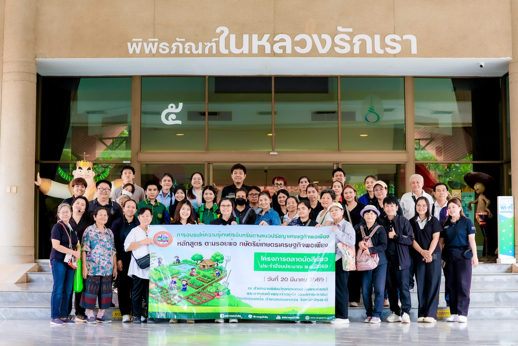 วันอาทิตย์ที่ 15 มีนาคม 2569 บรรยากาศการเรียนรู้ ณ พิพิธภัณฑ์การเกษตรเฉลิมพระเกียรติฯ จังหวัดปทุมธานี เต็มไปด้วยความคึกคักตั้งแต่ช่วงเช้า คณะวิทยาลัยนวัตกรรมสังคม มหาวิทยาลัยรังสิต จ.ปทุมธานี โรงเรียนคำพ่อสอน กทม. กรมชลประทาน กระทรวงเกษตรและสหกรณ์ กทม. เข้าร่วมโครงการส่งเสริมการเรียนรู้เกษตรเศรษฐกิจพอเพียง เริ่มต้นด้วยการเรียนรู้พระอัจฉริยภาพพระบาทสมเด็จพระเจ้าอยู่หัว รัชกาลที่ 9 ผ่านการชมนิทรรศการภายในพิพิธภัณฑ์ในหลวงรักเรา ต่อด้วยเข้าชมพิพิธภัณฑ์มหัศจรรย์พันธุกรรม ที่รวบรวมความหลากหลายของพันธุกรรมพืชท้องถิ่นของไทย การปลูก การดูแล รวมถึงการอนุรักษ์พันธุกรรม เพื่อส่งต่อรุ่นสู่รุ่น จากนั้นตื่นตาตื่นใจไปกับการเข้าชมภาพยนตร์แอนิเมชัน 3 มิติ และ 7 มิติ นอกจากนั้นทางคณะยังได้เข้าชมพิพิธภัณฑ์กลางแจ้ง สนุกไปกับการชมฐานการเรียนรู้เกษตรพอเพียงเมือง ฐานกเรียนรู้ 1 ไร่ พอเพียง พร้อมการลงมือฝึกปฏิบัติการปลูกผักคอนโด การทำนาดำ และนาโยนกล้า เป็นต้น สำหรับหน่วยงานที่สนใจเข้าทำกิจกรรมในรูปแบบหมู่คณะ สามารถดูหลักสูตรต่างๆได้ที่ https://www.wisdomking.or.th/views/course