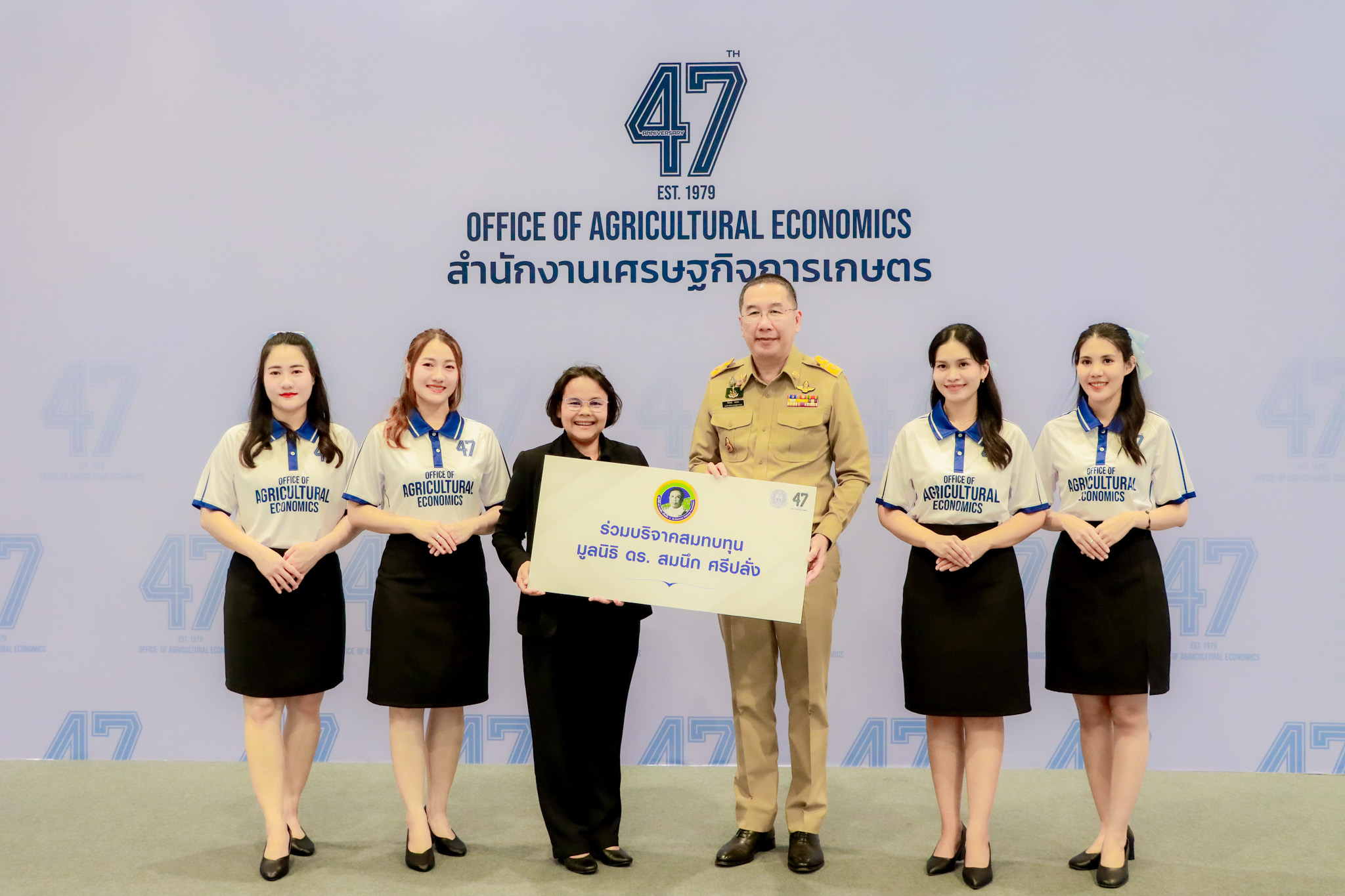 วันที่ 24 มีนาคม 2569 พันจ่าเอก ประเสริฐ มาลัย ผู้อำนวยการสำนักงานพิพิธภัณฑ์เกษตรเฉลิมพระเกียรติพระบาทสมเด็จพระเจ้าอยู่หัว มอบหมายให้ นางสาวสำเภาว์ งามเชย รองผู้อำนวยการฯ ร่วมเป็นเกียรติแสดงความยินดีเนื่องในโอกาสวันคล้ายวันสถาปนา สำนักงานเศรษฐกิจการเกษตร ครอบรอบ 47 ปี โดยมี นายพีรพันธ์ คอทอง เลขาธิการสำนักงานเศรษฐกิจการเกษตร พร้อมคณะผู้บริหารให้การต้อนรับ ณ บริเวณโถงชั้น 1 อาคารนวัตกรรม สำนักงานเศรษฐกิจการเกษตร เขตจตุจักร กรุงเทพฯ