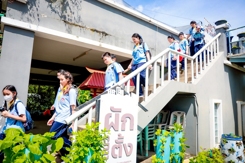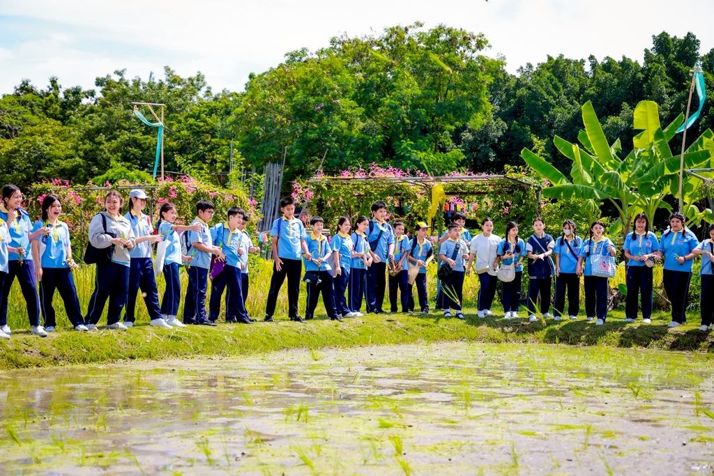 วันพฤหัสบดี ที่ 18 กันยายน 2568 พิพิธภัณฑ์การเกษตรฯ จ.ปทุมธานี ต้อบรับน้อง ๆ จากโรงเรียนทรงวิทยา จ.สมุทรปราการ โรงเรียนอยุธยาวิทยาลัย จ.พระนครศรีอยุธยา เข้าร่วมโครงการส่งเสริมการเรียนรู้เกษตรเศรษฐกิจพอเพียง ในรูปแบบหลักสูตร “วิถีเกษตรของพ่อ” และหลักสูตร “พอดี พอเพียง” เริ่มต้นกิจกรรมด้วยการเดินชมฐานการเรียนรู้เส้นทางพิพิธภัณฑ์กลางแจ้งนวัตกรรมเกษตรเศรษฐกิจพอเพียง จัดแสดงการทำเกษตรในรูปแบบที่หลากหลายรวมถึงการจัดการพื้นที่ขนาดเล็กที่สามารถสร้างคลังอาหารให้กับตนเอง อาทิ เกษตรพอเพียงเมือง วิถีเกษตรไทย 4 ภาค และบ้านนวัตกรรมพลังงาน ทั้งยังสนุกไปกับการลงมือปฏิบัติการสร้างบ้านดิน และนาโยนกล้า ที่สามารถนำไปประยุกต์ให้สอดคล้องกับตนเองได้ด้วย นอกจากนี้พี่ ๆ วิทยากร พาน้อง ๆ มาผจญภัยในพิพิธภัณฑ์ป่าดงพงไพร เรียนรู้ชีวิตของสัตว์ในเวลากลางวัน และกลางคืน ออกจากป่าก็ไปเรียนรู้กันต่อ กับพิพิธภัณฑ์มหัศจรรย์พันธุกรรม ที่รวบรวมความหลากหลาย และคุณค่าของพันธุกรรมที่หล่อเลี้ยงโลกเรา ก่อนปิดท้ายไปสนุกสนานกับกิจกรรมสร้างสรรค์ความคิดที่ช่วยฝึกทักษะการคิดแก้ปัญหาการทำงานร่วมกัน ผ่านกิจกรรมสร้างสรรค์ความคิด “แม่น้ำรวมใจ” และสนุกกับการเข้าชมภาพยนตร์การ์ตูนแอนิเมชัน 3 มิติ เป็นต้น