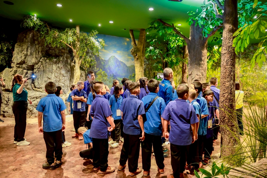 น้อง ๆ จากโรงเรียนสามวาวิทยา จ.ปทุมธานี และโรงเรียนบ้านทับสงฆ์ จ.จันทบุรี มาศึกษา เรียนรู้ ณ พิพิธภัณฑ์การเกษตรฯ จ.ปทุมธานี วันที่ 1 ตุลาคม 2568 ได้เข้าร่วมโครงการส่งเสริมการเรียนรู้เกษตรเศรษฐกิจพอเพียง ในรูปแบบหลักสูตร “ตามรอยพ่อ” และหลักสูตร “นวัตกรรมของพ่อ” เริ่มต้นกิจกรรมด้วยการเข้าชมพิพิธภัณฑ์มหัศจรรย์พันธุกรรม ที่รวบรวมความหลากหลายของพันธุกรรมพืชท้องถิ่นของไทย การปลูก การดูแล รวมถึงการอนุรักษ์พันธุกรรม เพื่อส่งต่อให้แก่คนรุ่นต่อไป และเข้าชมพิพิธภัณฑ์ป่าดงพงไพร เรียนรู้ถึงการดูแลรักษาทรัพยากรธรรมชาติและสิ่งแวดล้อม พร้อมทั้งศึกษาระบบนิเวศในป่ากลางวันและป่ากลางคืน ต่อด้วยเข้าชมภาพยนตร์แอนิเมชัน 3 มิติ จากนั้นสนุกกับการทำงานร่วมกันเป็นทีมในกิจกรรมสร้างสรรค์ความคิด นอกจากนั้นทางคณะยังได้เข้าชมพิพิธภัณฑ์กลางแจ้ง สนุกไปกับการเดินชมฐานการเรียนเกษตรพอเพียงเมือง ฐานการเรียนรู้ 1 ไร่พอเพียง และวิถีเกษตรไทย 4 ภาค รวมถึงการลงมือฝึกปฏิบัติการทำนาดำ และนาโยนกล้า ที่สามารถนำไปปรับประยุกต์ใช้ได้จริง อีกทั้งยังเป็นการสร้างจิตสำนึกที่ดีในการทำเกษตรในกับผู้ที่เข้าร่วมกิจกรรมอีกด้วย