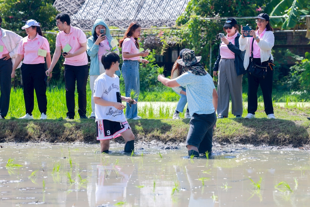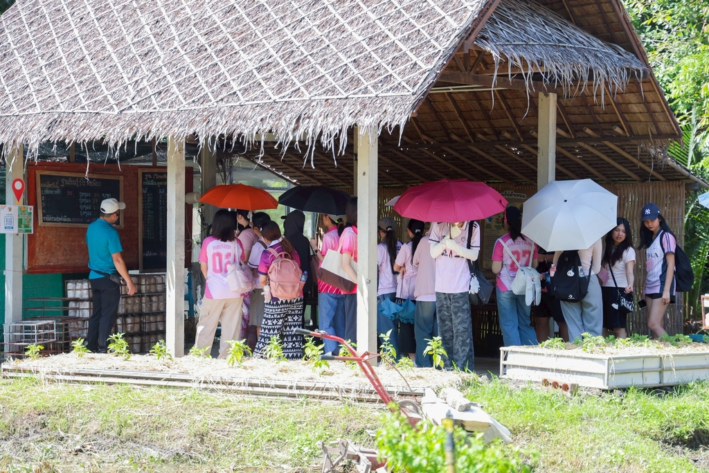 วันที่ 18 ตุลาคม 2568 คณะวัฒนธรรมสิ่งแวดล้อม และการท่องเที่ยวเชิงนิเวศ มหาวิทยาลัยศรีนทรวิโรฒ กทม. คณะครุศาสตร์ จุฬาลงกรณ์มหาวิทยาลัย กทม. และมหาวิทยาลัยราชภัฏพิบูลสงคราม จ.พิษณุโลก เข้าเยี่ยมชมพิพิธภัณฑ์การเกษตรฯ จ.ปทุมธานี ผ่านโครงการส่งเสริมการเรียนรู้เศรษฐกิจพอเพียง ในรูปแบบหลักสูตร “ตามรอยพ่อ” หลักสูตร “พอดี พอเพียง” เริ่มต้นกิจกรรมด้วยการเรียนรู้พระอัจฉริยภาพของพระบาทสมเด็จพระเจ้าอยู่หัว รัชกาลที่ 9 ที่มุ่งเน้นการพัฒนาประเทศ และส่งเสริมให้ประชาชนสามารถพึ่งพาตนเองได้ รวมถึงเรียนรู้เรื่องราวหลักปรัชญาเศรษฐกิจพอเพียง ในพิพิธภัณฑ์ในหลวงรักเรา ผ่านนิทรรศการน้ำคือชีวิต นิทรรศการวิถีเกษตรของพ่อ นิทรรศการตลาดเก่าชาวเกษตร และนิทรรศการมหัศจรรย์ท้องทุ่ง ต่อด้วยเข้าชมพิพิธภัณฑ์มหัศจรรย์พันธุกรรม ที่รวบรวมความหลากหลายของพันธุกรรมพืชท้องถิ่นของไทย การปลูก การดูแล รวมถึงการอนุรักษ์พันธุกรรม เพื่อส่งต่อรุ่นสู่รุ่น จากนั้นตื่นตาตื่นใจไปกับการเข้าชมภาพยนตร์แอนิเมชัน 3 มิติ จากนั้นไปสนุกสนานกับกิจกรรมสร้างสรรค์ความคิดที่ช่วยเสริมสร้างทักษะการสื่อสาร การทำงานเป็นทีม และข้อคิดดีๆ ในการพัฒนาตัวเองจากคาถาหัวใจนักปราชญ์ นอกจากนั้นทางคณะยังได้เข้าชมพิพิธภัณฑ์กลางแจ้ง สนุกไปกับการเดินชมฐานการเรียนรู้บ้านดินบ้านฟาง และฐานการเรียน 1 ไร่พอเพียง รวมถึงการลงมือฝึกปฏิบัติการทำนาดำ และนาโยนกล้า ที่สามารถนำไปปรับประยุกต์ใช้ได้จริง อีกทั้งยังเป็นการสร้างจิตสำนึกที่ดีในการทำเกษตรในกับผู้ที่เข้าร่วมกิจกรรมอีกด้วย