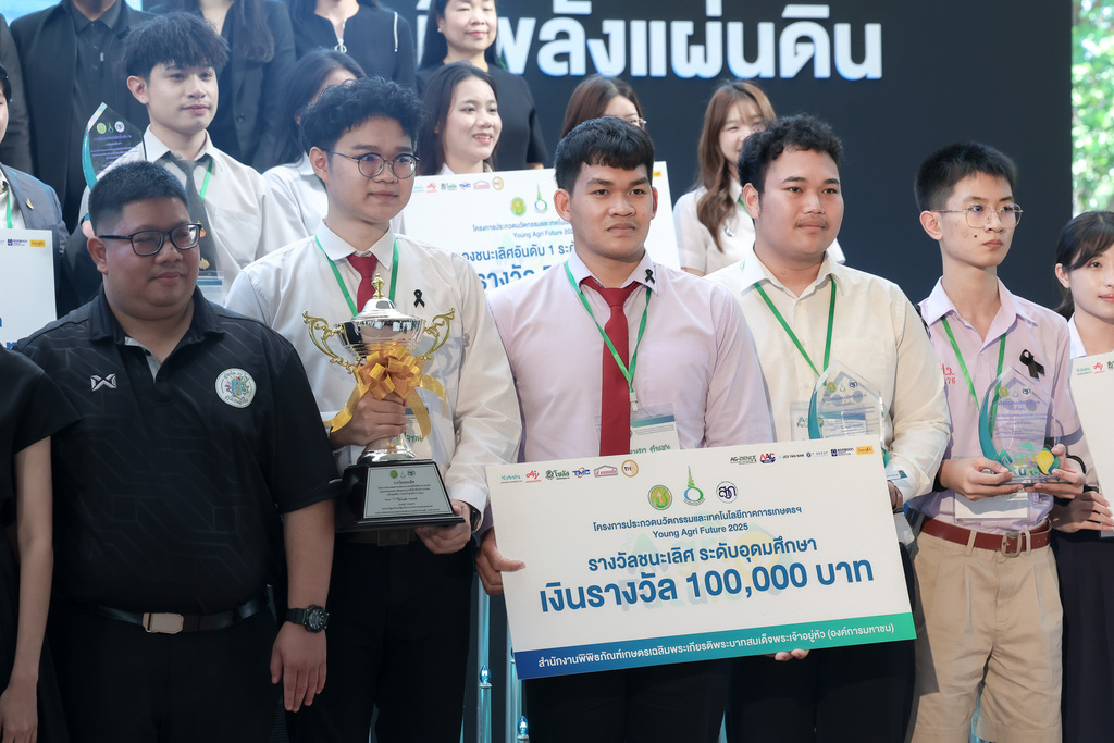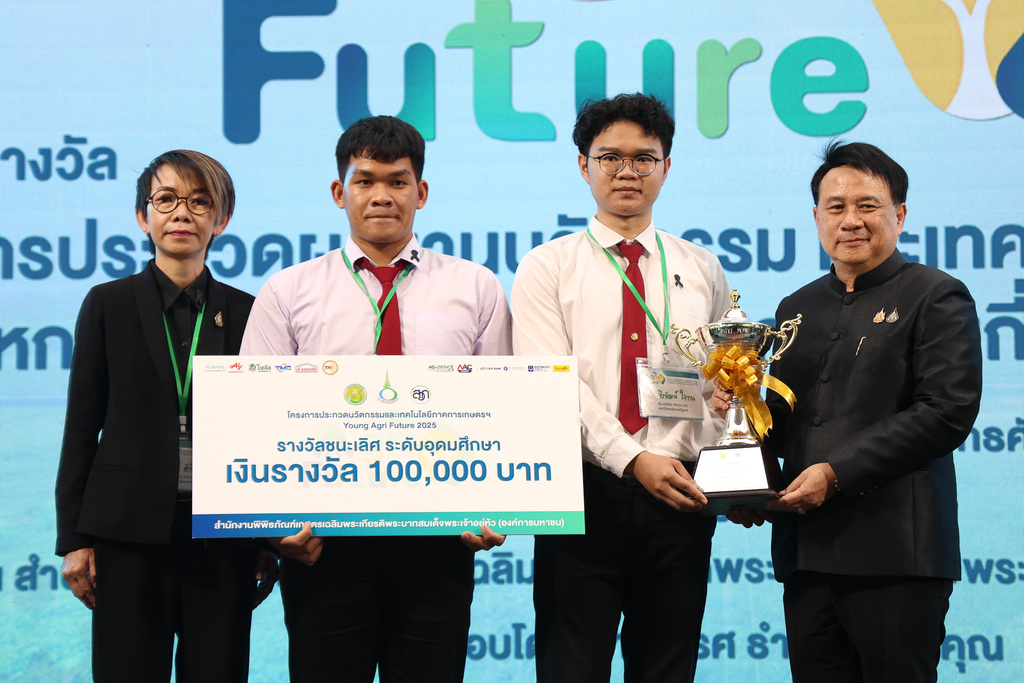 เมื่อวันที่ 3-4 ธันวาคม 2568 สำนักงานพิพิธภัณฑ์เกษตรเฉลิมพระเกียรติพระบาทสมเด็จพระเจ้าอยู่หัว (องค์การมหาชน) หรือ พกฉ. ร่วมกับ สำนักงานพัฒนาการวิจัยการเกษตร (องค์การมหาชน) หรือ สวก. และกระทรวงเกษตรและสหกรณ์ จัดกิจกรรมนำเสนอผลงานรอบชิงชนะเลิศ และพิธีมอบรางวัลผู้ชนะการประกวด ในโครงการประกวดนวัตกรรมและเทคโนโลยีภาคการเกษตร อุตสาหกรรมเกษตร หรืออุตสาหกรรมที่เกี่ยวข้องกับภาคการเกษตร Young Agri Future 2025 ระดับพื้นฐาน (มัธยมศึกษา-ปวช.) และระดับอุดมศึกษา (ปวส.-อนุปริญญา-ปริญญาตรี) รวม 20 รางวัล มูลค่ารวม 530,000 บาท โดยโครงการดังกล่าว ได้เปิดโอกาสให้นักเรียน นักศึกษา และคนรุ่นใหม่ จากทั่วประเทศนำความรู้ และความคิดสร้างสรรค์ มาสร้างนวัตกรรมและเทคโนโลยีทางการเกษตร สุดยอดนักคิดรุ่นใหม่ ถ่ายทอดความยิ่งใหญ่แห่งศาสตร์พระราชา ในการช่วยยกระดับคุณภาพชีวิตของเกษตรกร และช่วยในการพัฒนาด้านการเกษตรสู่การผลิตและสร้างความเข้มแข็งของภาคการเกษตร ภายใต้หัวข้อ “นวัตกรรมเกษตร : เพิ่มประสิทธิภาพและมูลค่าการผลิตเกษตรไทยยั่งยืน” รวมถึงการพัฒนาต่อยอดผลงานนวัตกรรมที่พร้อมจะพัฒนาและประยุกต์ใช้เพื่อเพิ่มประสิทธิภาพในกระบวนการด้านการเกษตร สู่โอกาสในการพัฒนา ขยายผลและการต่อยอดทางธุรกิจภาคการเกษตรสู่แนวทางในการขับเคลื่อนยุทธศาสตร์การพัฒนาประเทศ และที่สำคัญคือ ผลงานที่ได้รับการคัดเลือก มีโอกาสในการได้รับทุนวิจัยเพื่อพัฒนาต้นแบบ หรือการต่อยอดในเชิงพาณิชย์ สำหรับผลงานที่ผ่านเกณฑ์การพิจารณาให้ทุนวิจัย ของ สวก. ในวงเงินมูลค่ารวม 20,000,000 บาท (ยี่สิบล้านบาท) อีกทั้งยังได้รับเกียรติจากคณะกรรมการผู้ทรงคุณวุฒิ และผู้สนับสนุนทั้งภาครัฐและภาคเอกชน กว่า 12 หน่วยงาน ที่ร่วมสนับสนุนกิจกรรม จนทำให้เกิดผลงานนวัตกรรมและเทคโนโลยีภาคการเกษตรฯ ใหม่ๆ จากมุมมองของกลุ่มคนรุ่นใหม่ที่เข้าร่วมโครงการ กว่า 100 ผลงานจากทั่วประเทศ และคัดเลือกผลงานจนเหลือผู้ผ่านเข้ารอบตัดสินเพียง 59 ผลงานที่ได้เข้าร่วมกิจกรรม Work shop Young Agri Future 2025 และนำเสนอผลงานต่อคณะกรรมการตัดสินในรอบ Final จนได้ผู้ชนะเลิศและรองชนะเลิศของแต่ละระดับ โดยมีผลงาน ที่ผ่านเข้ารอบชิงชนะเลิศ อาทิ เทคโนโลยีสมาร์ทฟาร์มสำหรับตรวจสอบและควบคุมการเจริญเติบโตของสาหร่ายผักกาดทะเล , เครื่องเพาะปลูกพืชเศรษฐกิจแบบลงหัวด้วยระบบหมอกไฮบริดควบคุม สภาพแวดล้อมผ่านระบบอัจฉริยะเพื่อรับมือกับความไม่แน่นอนของสภาพ อากาศ , นวัตกรรมลดความชื้นวัตถุดิบทางการเกษตรต้นทุนต่ำเพื่อสร้างและเพิ่มรายได้อย่างยั่งยืนตามหลักเศ