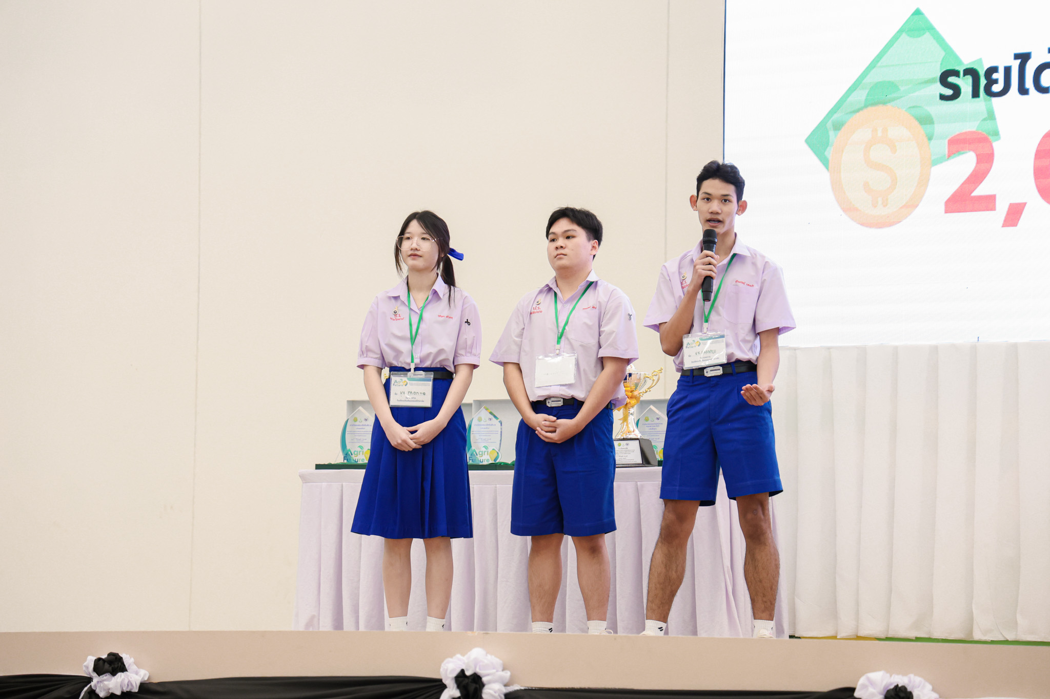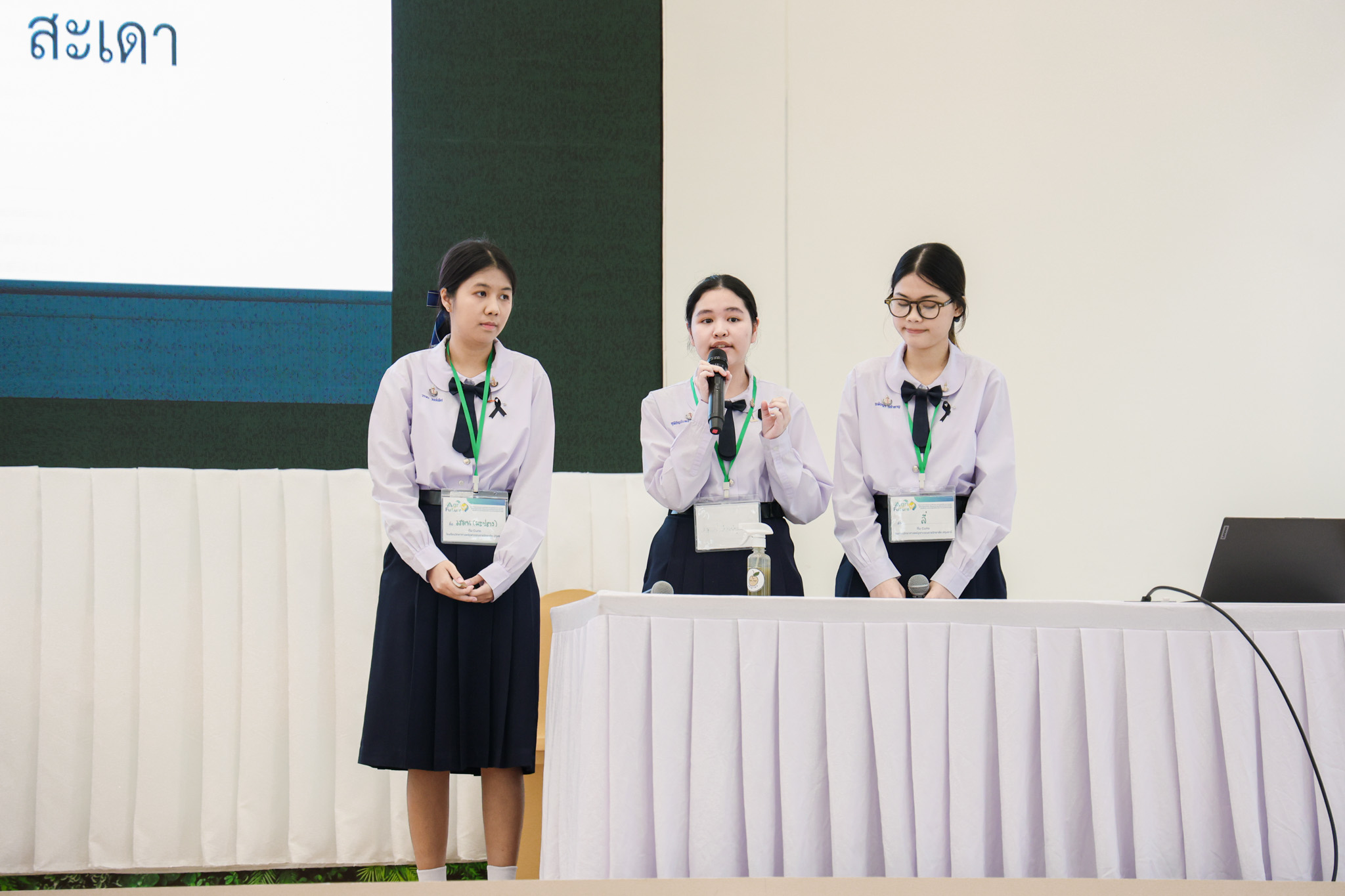 2. รองชนะเลิศอันดับ 1 รับโล่รางวัล พร้อมเงินรางวัล 40,000 บาท ได้แก่ ทีม Angel Film จากโรงเรียนเตรียมอุดมศึกษาภาคใต้ ผลงาน : โครงงานการพัฒนาแผ่นฟิล์มคลุมดินชีวภาพจากกาบกล้วยเปลือกส้มโอ และไบโอชาร์จากเปลือกมังคุดในการรักษาความชื้นหน้าดิน