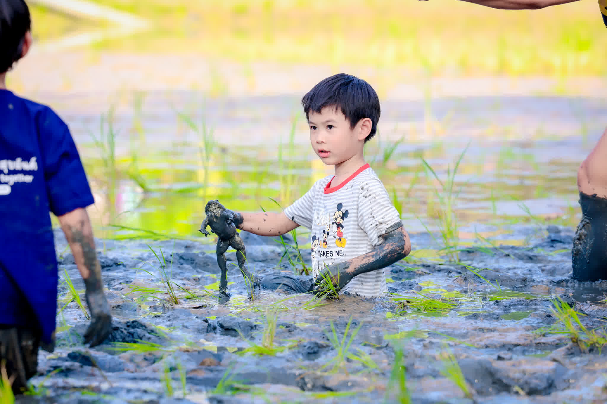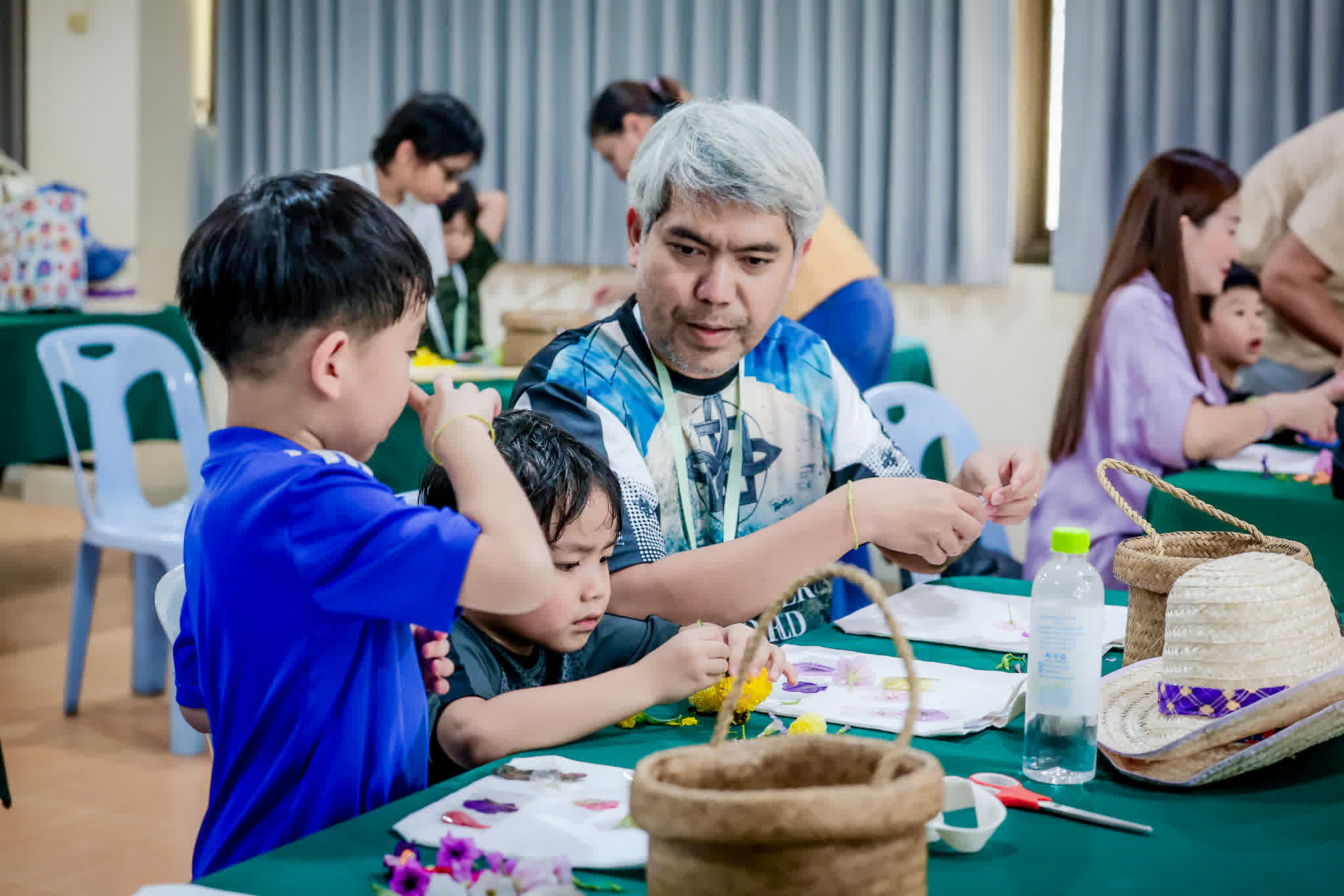 วันที่ 28 กุมภาพันธ์ – 1 มีนาคม 2569 บรรยากาศที่พิพิธภัณฑ์การเกษตรเต็มไปด้วยรอยยิ้มและเสียงหัวเราะของ 5 ครอบครัว ที่จับมือกันมาเปิดประสบการณ์เรียนรู้ในค่าย “Family Day Camp” 2 วัน 1 คืน ที่ทั้งสนุก อบอุ่น และได้ความรู้กลับบ้านแบบเต็มกระเป๋า เช้าวันแรกเริ่มต้นด้วยการลงทะเบียนและละลายพฤติกรรมเบา ๆ ให้แต่ละครอบครัวได้ทำความรู้จักกัน ก่อนจะพากันนั่งรถรางชมพิพิธภัณฑ์กลางแจ้ง และเยี่ยมชม Mado Pavilion เปิดโลกเกษตรสร้างสรรค์แบบใกล้ชิด ช่วงบ่ายเติมพลังด้วยกิจกรรมงานประดิษฐ์ “กระเป๋าผ้าพิมพ์ลายดอกไม้” ที่แต่ละครอบครัวตั้งใจออกแบบลวดลายไม่ซ้ำใคร เสียงกรี๊ดเบา ๆ ดังขึ้นเมื่อถึงกิจกรรมไฮไลต์ “ลุย เล่น โคลน หรรษาในแปลงนา” ที่ทั้งเด็กและผู้ใหญ่ถอดรองเท้าลงนา สัมผัสดินโคลนแบบธรรมชาติแท้ ๆ เปื้อนกายแต่ได้รอยยิ้มเต็มหัวใจ ก่อนปิดท้ายค่ำคืนด้วยเกมสนุก ๆ และปาร์ตี้หมูกระทะแสนอร่อย บรรยากาศล้อมวงพูดคุยกันใต้แสงไฟอุ่น ๆ กลายเป็นช่วงเวลาแห่งความทรงจำที่หลายบ้านบอกว่า “อยากให้นานกว่านี้อีกหน่อย”