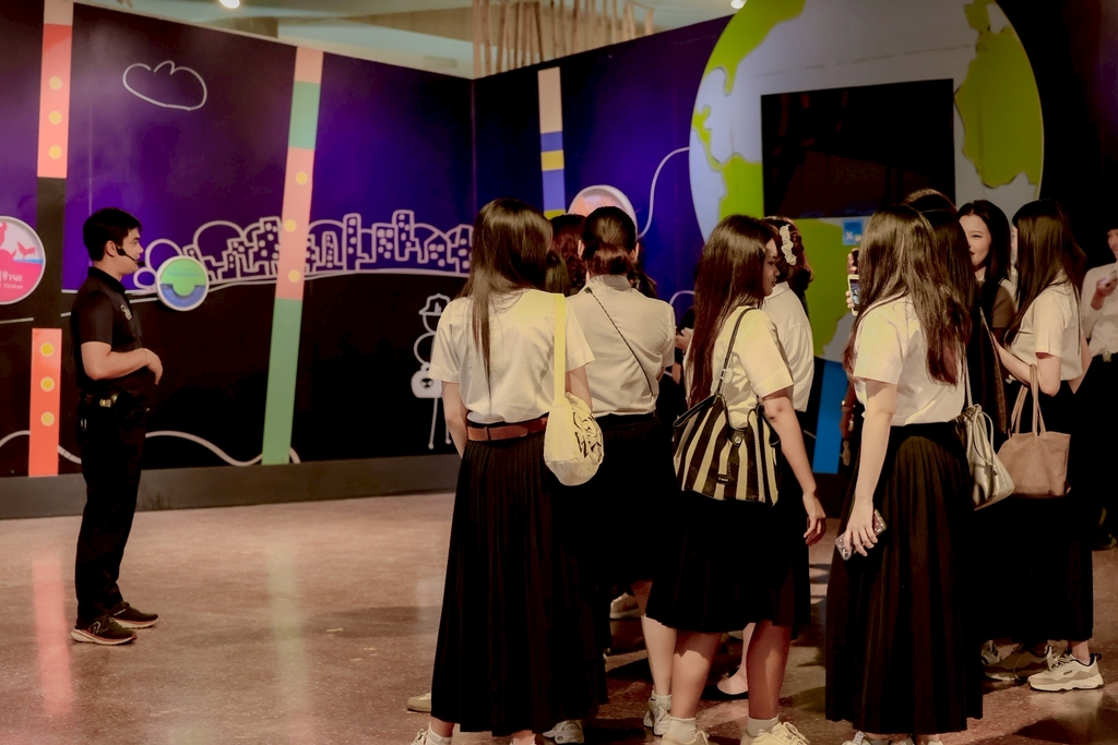 วันพุธที่ 11 มีนาคม 2569 พิพิธภัณฑ์การเกษตรเฉลิมพระเกียรติฯ จังหวัดปทุมธานี ให้การต้อนรับ อาจารย์ นักศึกษา จากมหาวิทยาลัยเทคโนโลยีราชมงคลสุวรรณภูมิ ศูนย์หันตรา จังหวัดพระนครศรีอยุธยา เข้าร่วมโครงการส่งเสริมการเรียนรู้เกษตรเศรษฐกิจพอเพียง ในรูปแบบหลักสูตร “ตามรอยพ่อ” เริ่มต้นด้วยการเรียนรู้พระเกียรติคุณ และพระอัจฉริยภาพของพระมหากษัตริย์ไทย ด้านการเกษตร ผ่านนิทรรศการเกษตรไทย เกษตรโลก นิทรรศการนวัตกรรมเกษตรเศรษฐกิจพอเพียง นิทรรศการเกษตรอนาคต ภายในพิพิธภัณฑ์ในหลวงรักเรา และเข้าชมภาพยนตร์แอนิเมชัน 3 มิติ “เรื่องทรัพย์ดินสินน้ำ” พร้อมฝึกทักษะการคิด การทำงานเป็นทีม สอดแทรกหลักปรัชญาของเศรษฐกิจพอเพียง ผ่านกิจกรรมรากฐานแห่งความมั่นคง