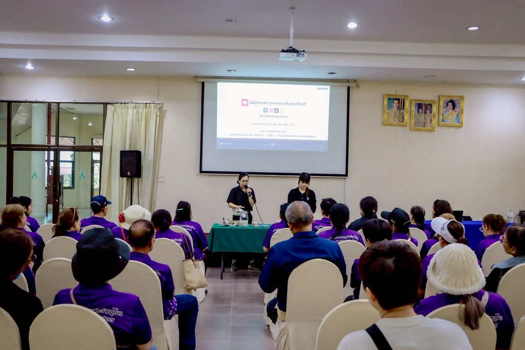 พิพิธภัณฑ์การเกษตรเฉลิมพระเกียรติพระบาทสมเด็จพระเจ้าอยู่หัว จ.ปทุมธานี ยินดีต้อนรับคณะเยี่ยมชมจากโรงเรียนอนุบาลเทศบาลด่านสำโรง จ.สมุทรปราการ ผ่านหลักสูตรนวัตกรรมของพ่อ จับกลุ่มยกขบวน ชวนนั่งรถรางชมฐานการเรียนรู้สุดพิเศษ บนเส้นทางพิพิธภัณฑ์เกษตรตามรอยพ่อ เรียนรู้เทคนิคการปลูกผักกางมุ้ง แนวทางการป้องกันศัตรูพืช และลดการใช้สารเคมีของเกษตรกร พร้อมเยี่ยมชมแปลงเกษตรอินทรีย์ของพี่ๆ 9 กล้า กลุ่มคนกล้าตามฝัน ผู้เข้าอบรมหลักสูตรทำนา 1 ไร่ ได้เงิน 1 แสนบาท ผ่านการเรียนรู้ และลงมือปฏิบัติจริงลงมือปฏิบัติการขยายพันธุ์พืชแบบควบแน่น สนุกสนานทะลุมิติด้วยภาพยนตร์แอนิเมชั่น 3 มิติ เรื่องแผ่นดินของเรา เล่นเกมสนุกสนานสร้างสรรค์ความคิดแผ่นเจ้าปัญหาช่วยกันคิด แก้ไขปัญหาผ่านกระบวนการกลุ่ม ทั้งสุข สนุก และได้ความรู้ สอบถามรายละเอียดได้ที่ 02-529-2212-13, 09-4649-2333, 08-7359-7171 ติดตามข้อมูลข่าวสารทาง facebook/InstagramID: wisdomkingfan และ @LineID: @wisdomkingfan