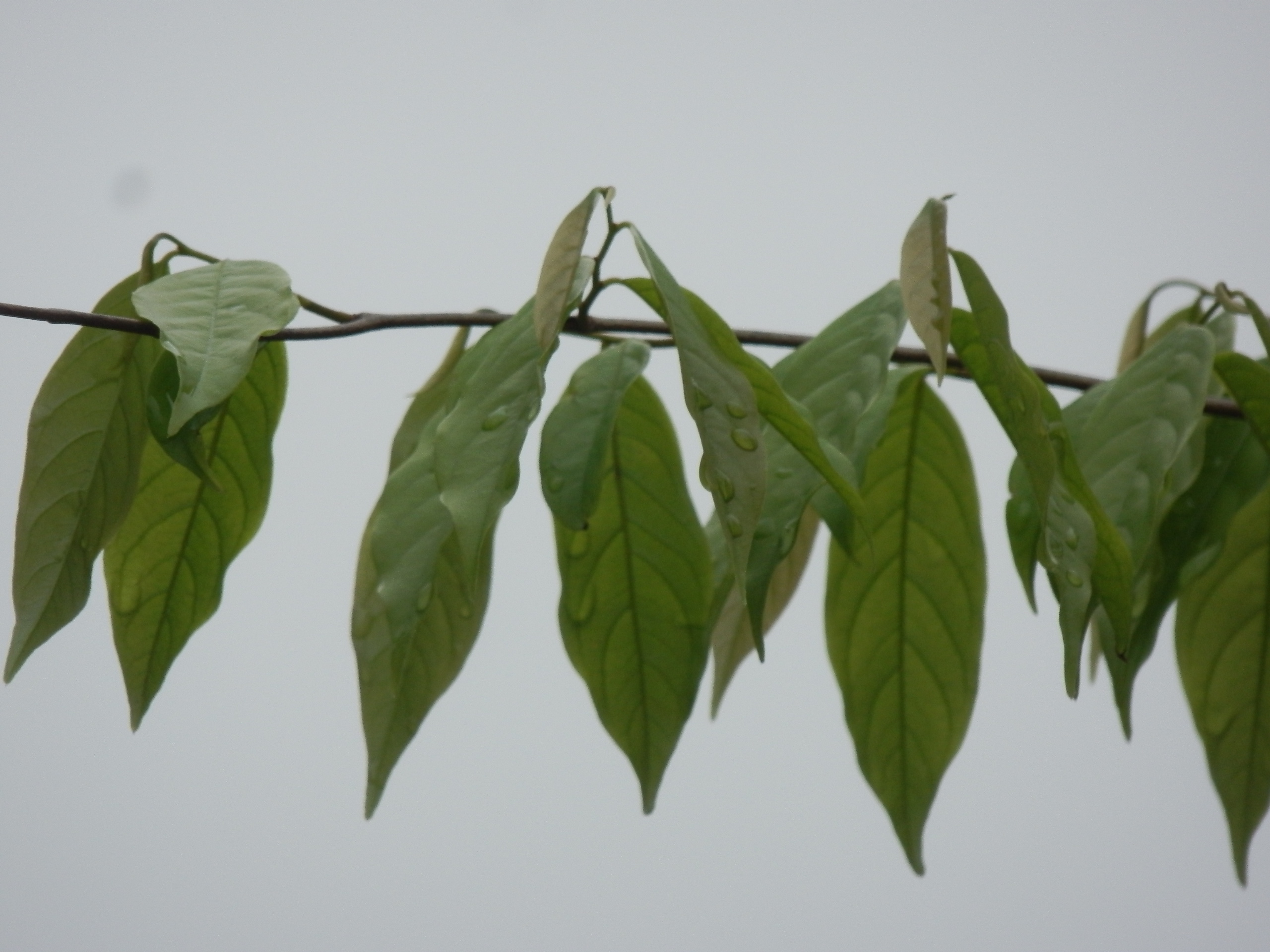 | ลักษณะใบ | ใบเดี่ยว เรียงสลับ รูปใบหอกแกมรูปขอบขนาน ขอบเรียบ ใบอ่อนมีขนนุ่มและขนจะค่อย ๆ ร่วงไปเมื่อใบแก่ แผ่นใบบาง ด้านหน้าใบสีเขียวเข้ม หลังใบสีจางหรือสีขาวอมเทา เส้นแขนงใบข้างละ 8 - 15 เส้น เห็นได้ชัดด้านหลังใบ ก้านใบสั้นและมีขนสั้น ๆ |