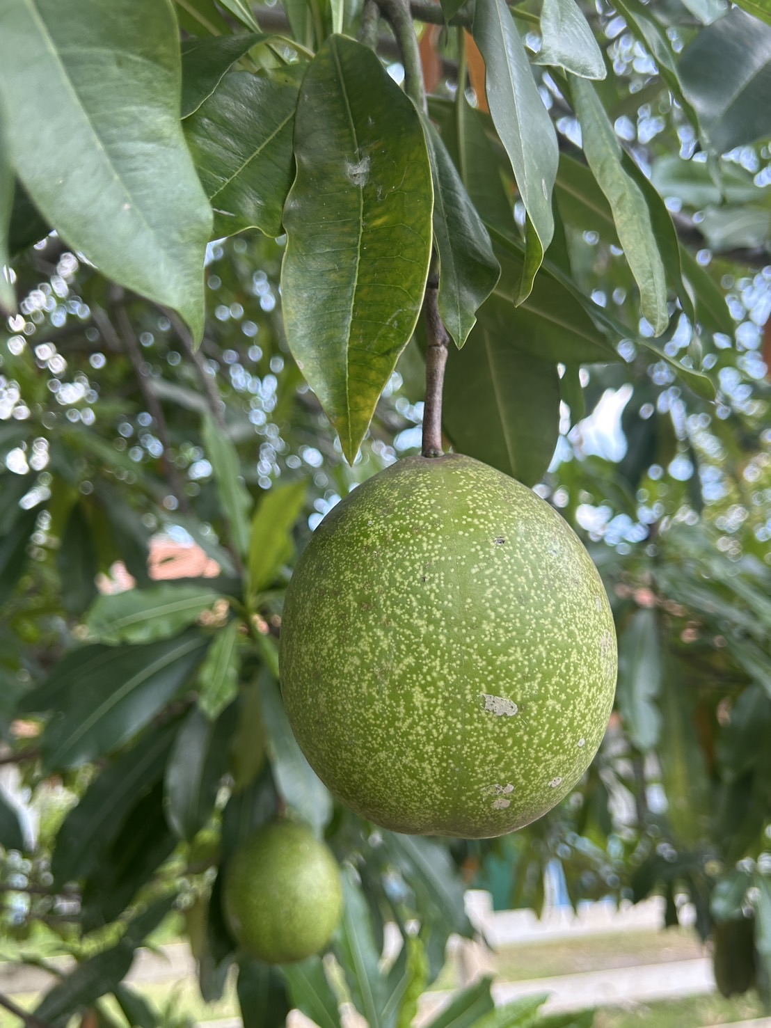 | ลักษณะผล | ผลเป็นรูปทรงกลม หรือค่อนข้างกลมรีเป็นสองพูตื้น ๆ ผลเป็นผลสดแบบมีเนื้อ มีขนาดกว้างประมาณ 6 เซนติเมตรและยาวประมาณ 7 เซนติเมตร ผิวผลเรียบเนียนเป็นมันและมีจุดเล็ก ๆ สีขาวกระจายทั่วไป ผลอ่อนเป็นสีเขียว เมื่อแก่แล้วจะเปลี่ยนเป็นสีแดงเข้มถึงสีม่วงเข้ม |