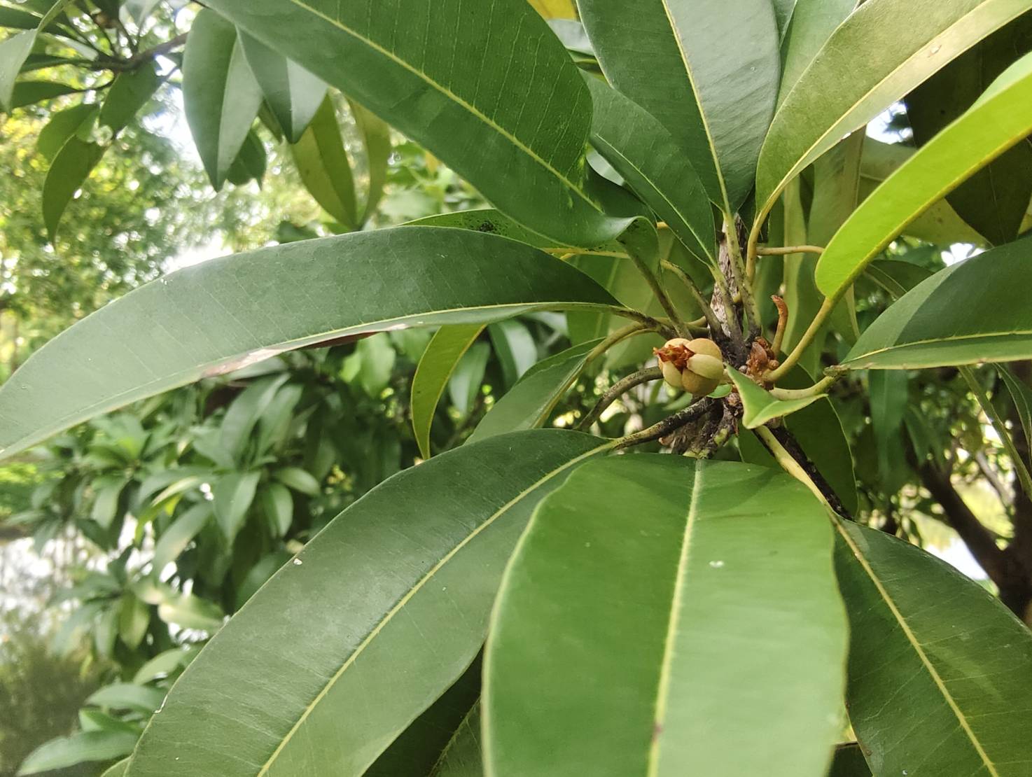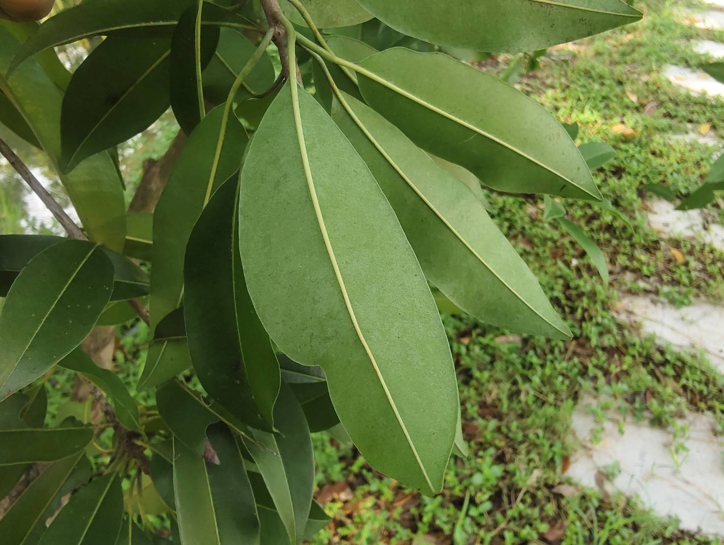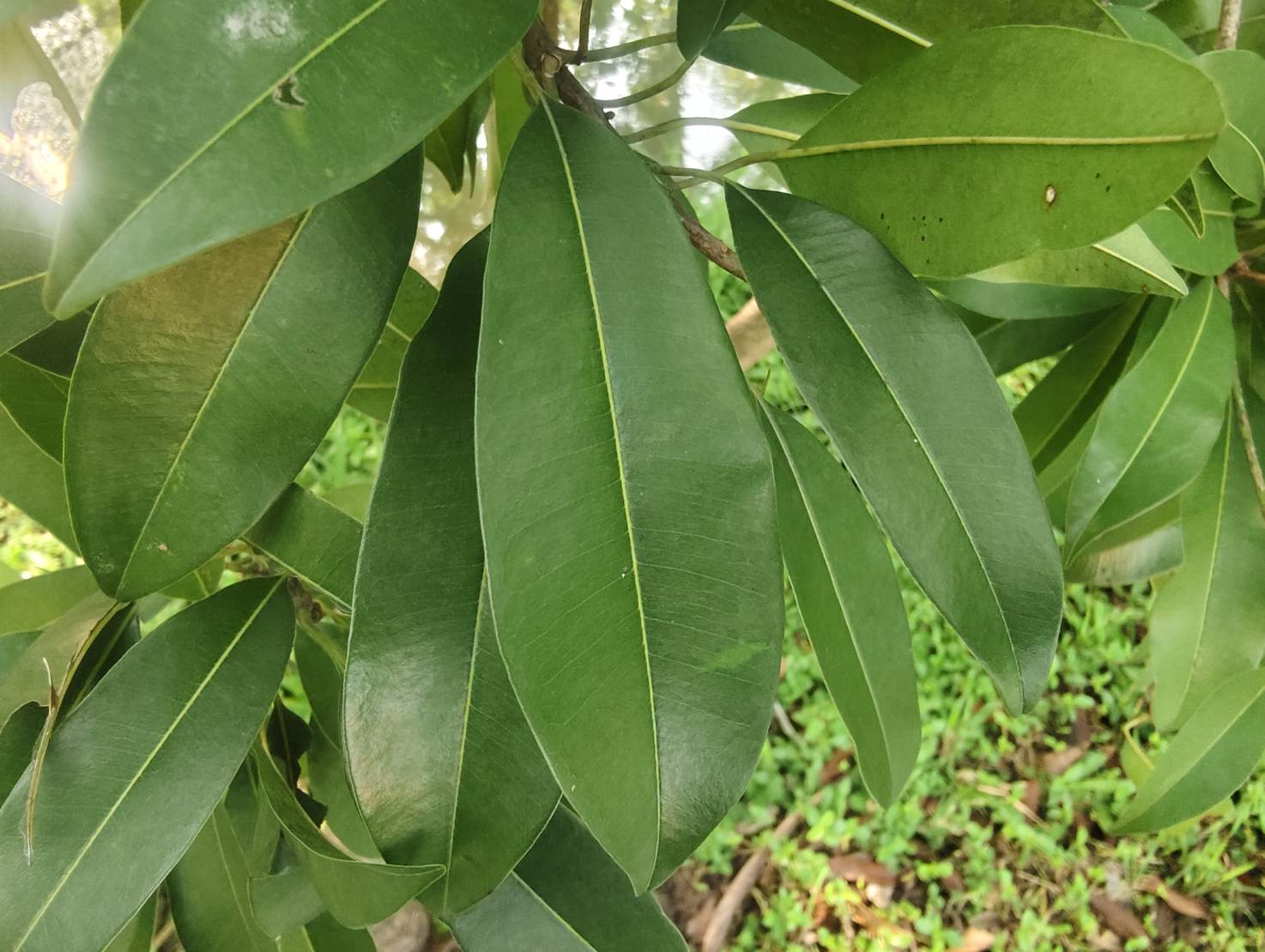 | ลักษณะใบ | ใบเดี่ยวเรียงเวียนสลับ รูปรีถึงรูปรีแกมรูปขอบขนาน รูปไข่แกมรูปรี หรือรูปรีแกมรูปใบหอก กว้าง 2.0 - 5.5 เซนติเมตร ยาว 6.0 - 14.5 เซนติเมตร ปลายใบแหลม โคนใบสอบ แผ่นใบหนาสีเขียวเข้มเป็นมัน ท้องใบมีสีน้ำตาลอมเขียว |