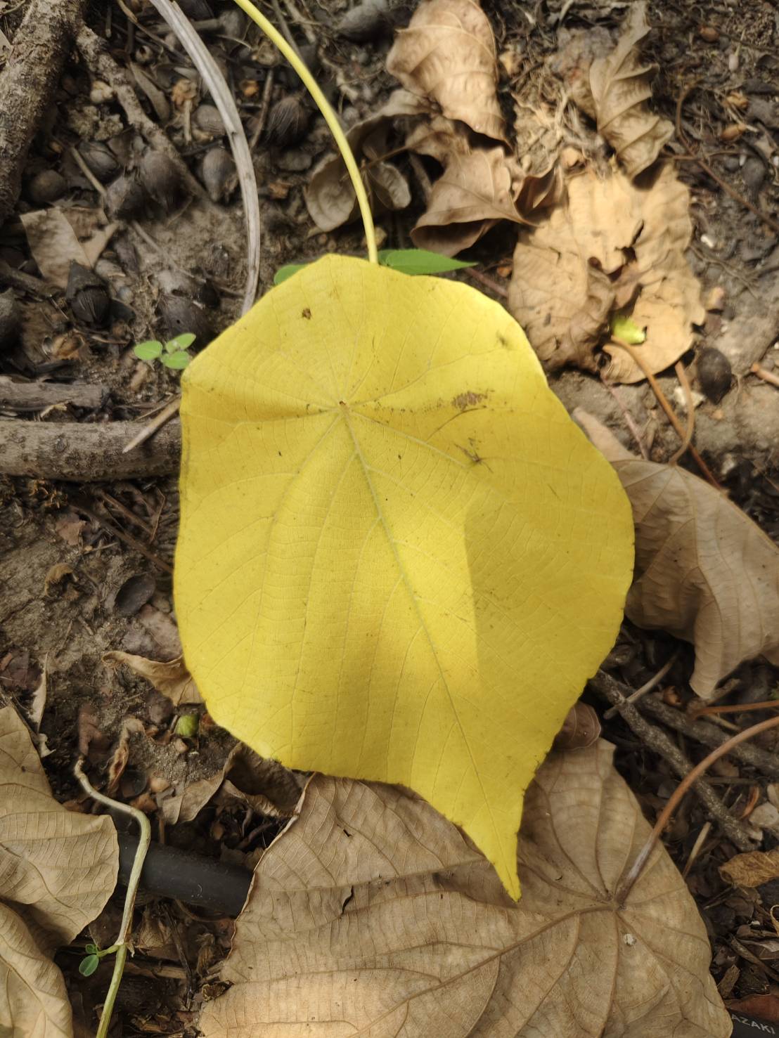 | ลักษณะใบ | ใบรูปไข่ ก้านใบยาว 20 เซนติเมตร ขอบจักซี่ฟัน โคนแบบก้นปิด มีต่อมน้ำต้อยสีดำที่โคนประมาณ 4 ต่อม |