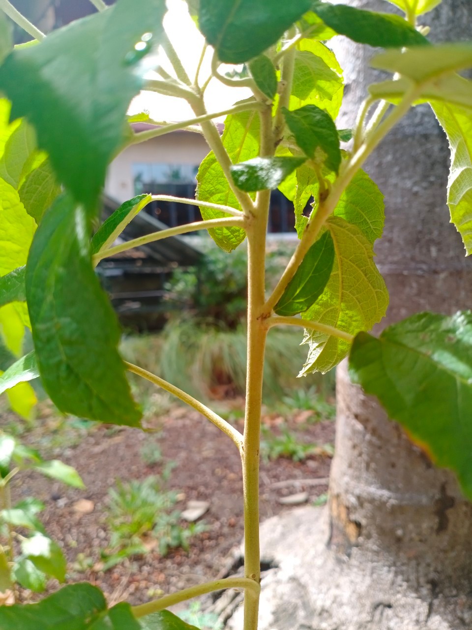 | ลักษณะวิสัย | ไม้พุ่ม สูงประมาณ 2 เมตร กิ่งก้านมีขนเป็นรูปดาวสีขาว เปลือกลำต้นเป็นสีน้ำตาลขรุขระ ทุกส่วนมีขน ส่วนรากมีลักษณะเรียวยาว เปลือกหุ้มรากเป็นเยื่อบางสีเหลืองเข้ม มีกลิ่นหอม |
