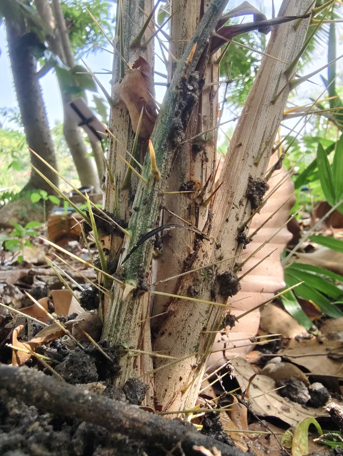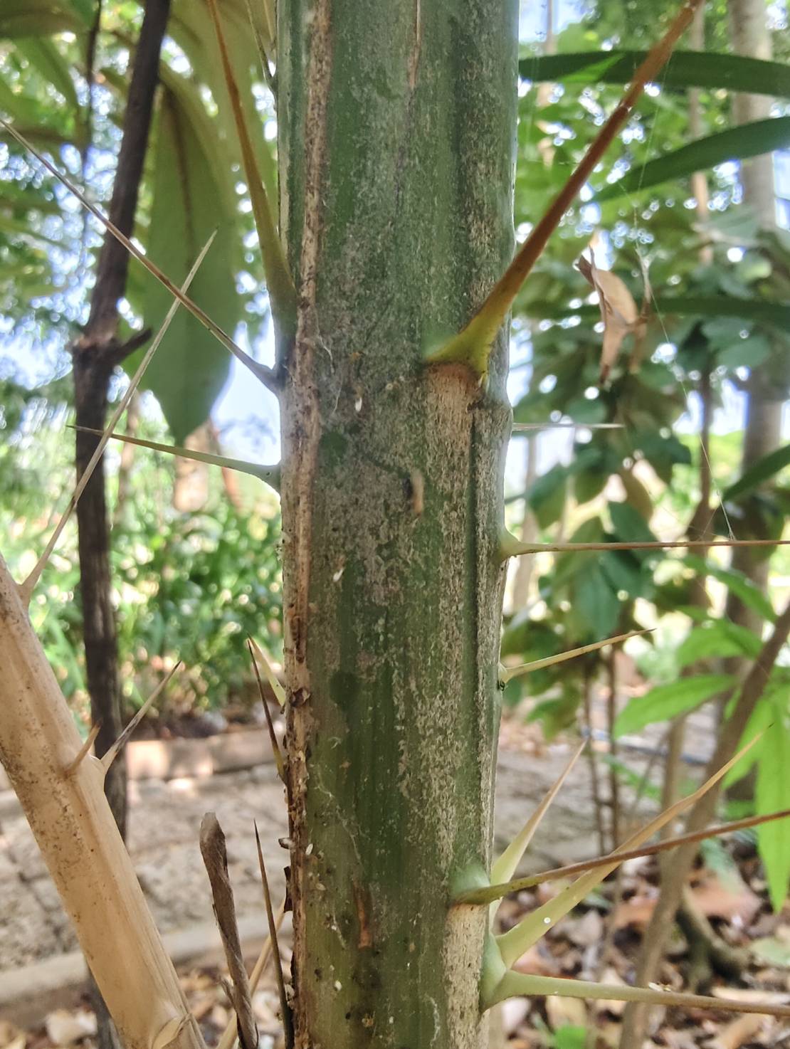 | ลักษณะวิสัย | ลำต้นเป็นเถาเนื้อแข็ง มีกาบหุ้มลำต้นสีเขียวเข้ม มีหนามโดยรอบ |