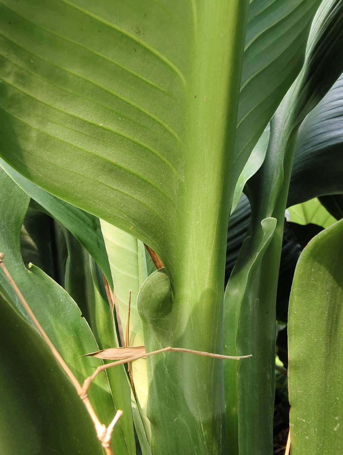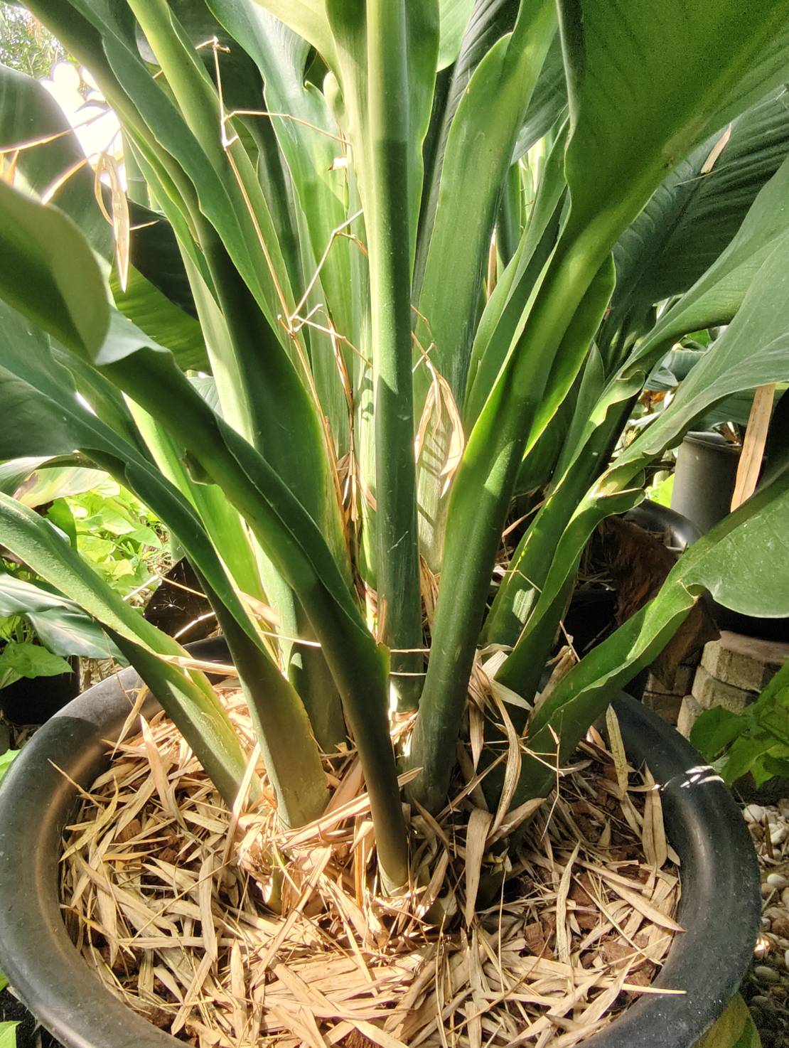 | ลักษณะวิสัย | ลำต้นเป็นเหง้าอยู่ใต้ดินแล้วแตกหน่อขึ้นมาเป็นกอ ใบเป็นใบเดี่ยว กว้าง 10 - 15 เซนติเมตร ยาว 20 - 30 เซนติเมตร ทุกส่วนมีน้ำยางใส |