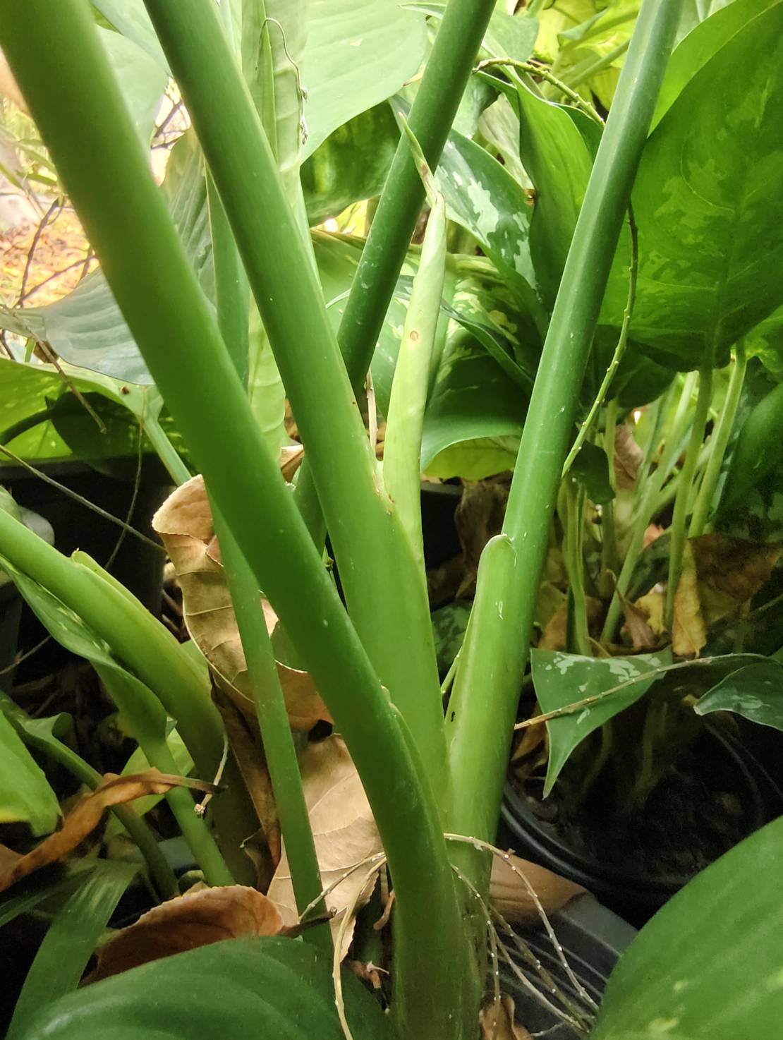 | ชื่ออื่น | ว่านหมื่นปี ช้างเผือก ว่านพญาค่าง อ้ายใบก้านขาว บ้วนมีแช ว่านเจ้าน้อย มหาพรหม อ้ายใบ |