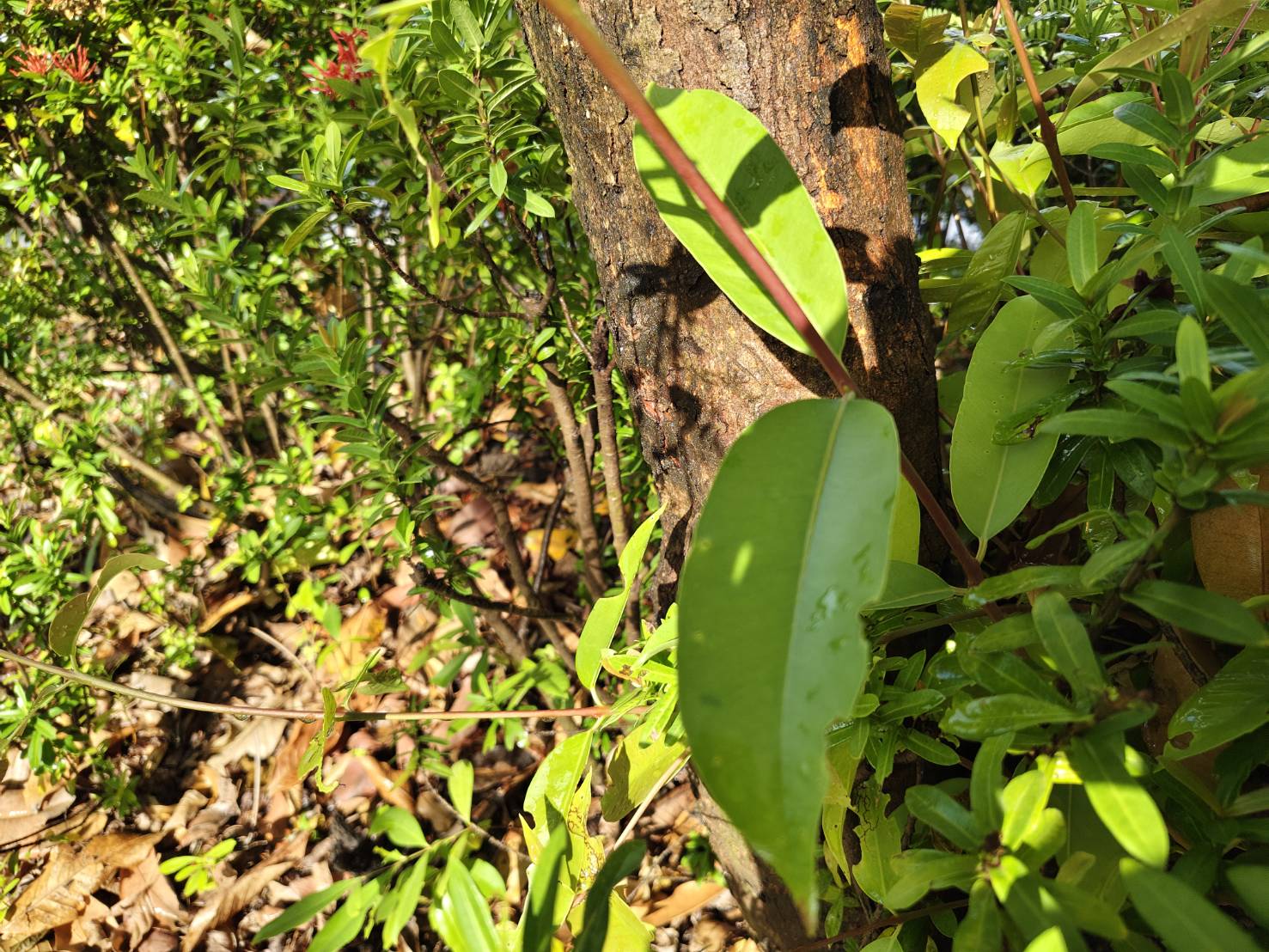 | ลักษณะใบ | เป็นใบเดี่ยว เรียงตรงกันข้าม รูปรีหรือรูปไข่ ใบเรียบ ปลายใบมนแหลม โคนใบมน ผิวใบเป็นมันเรียบ เส้นใบแตกแขนงออกจากเส้นกลาง ใบค่อนข้างเป็นระเบียบ ใบปลายกิ่งจะเป็นคู่ |