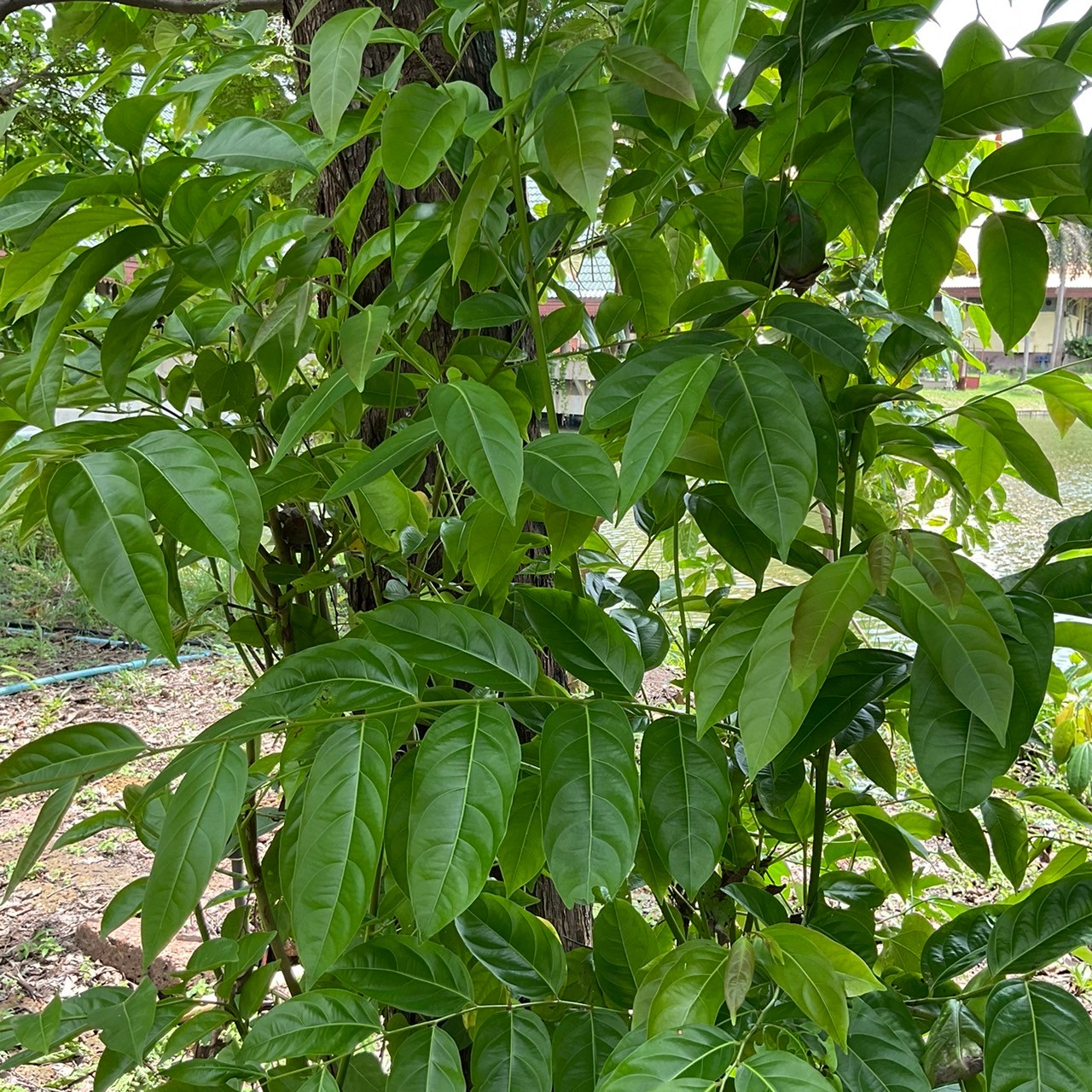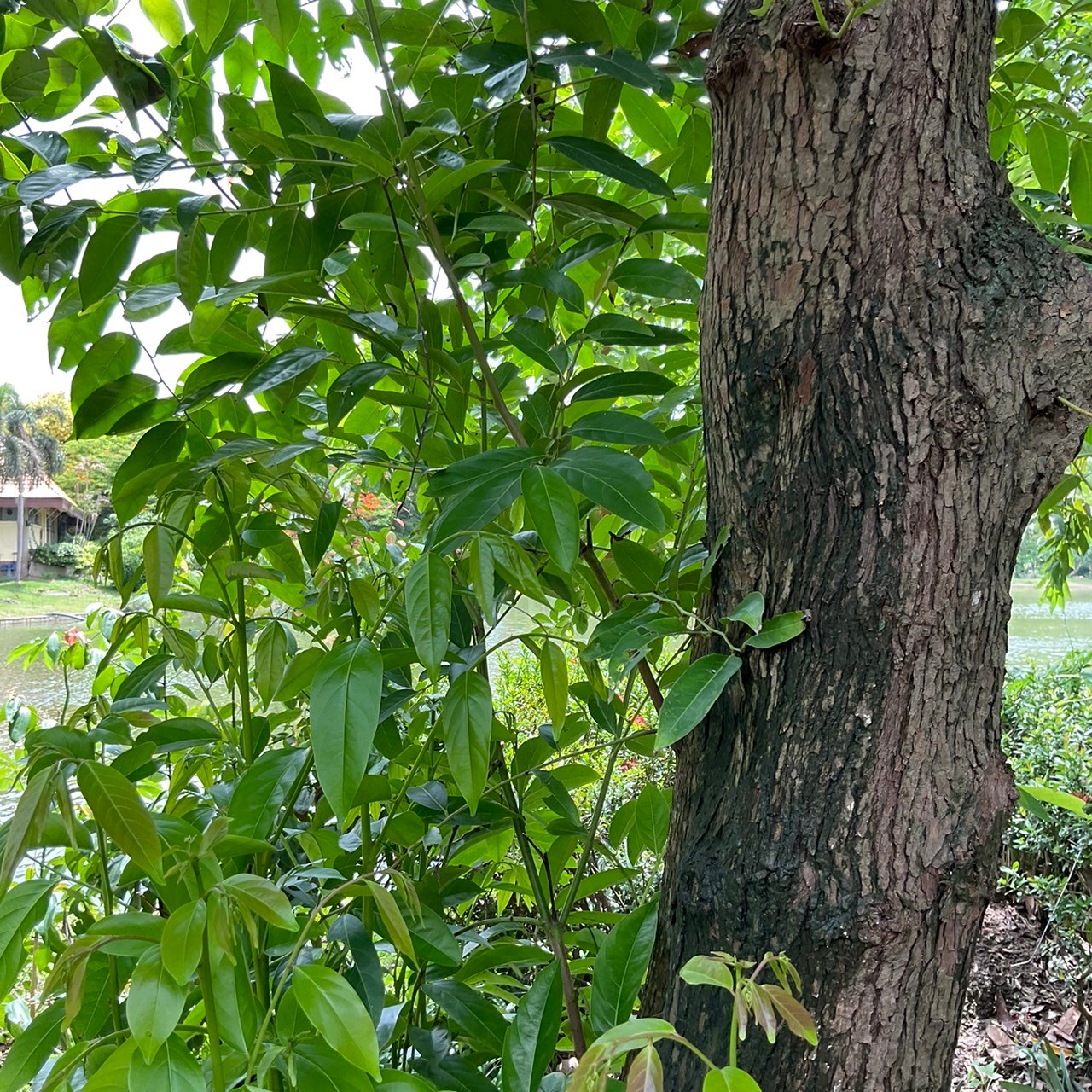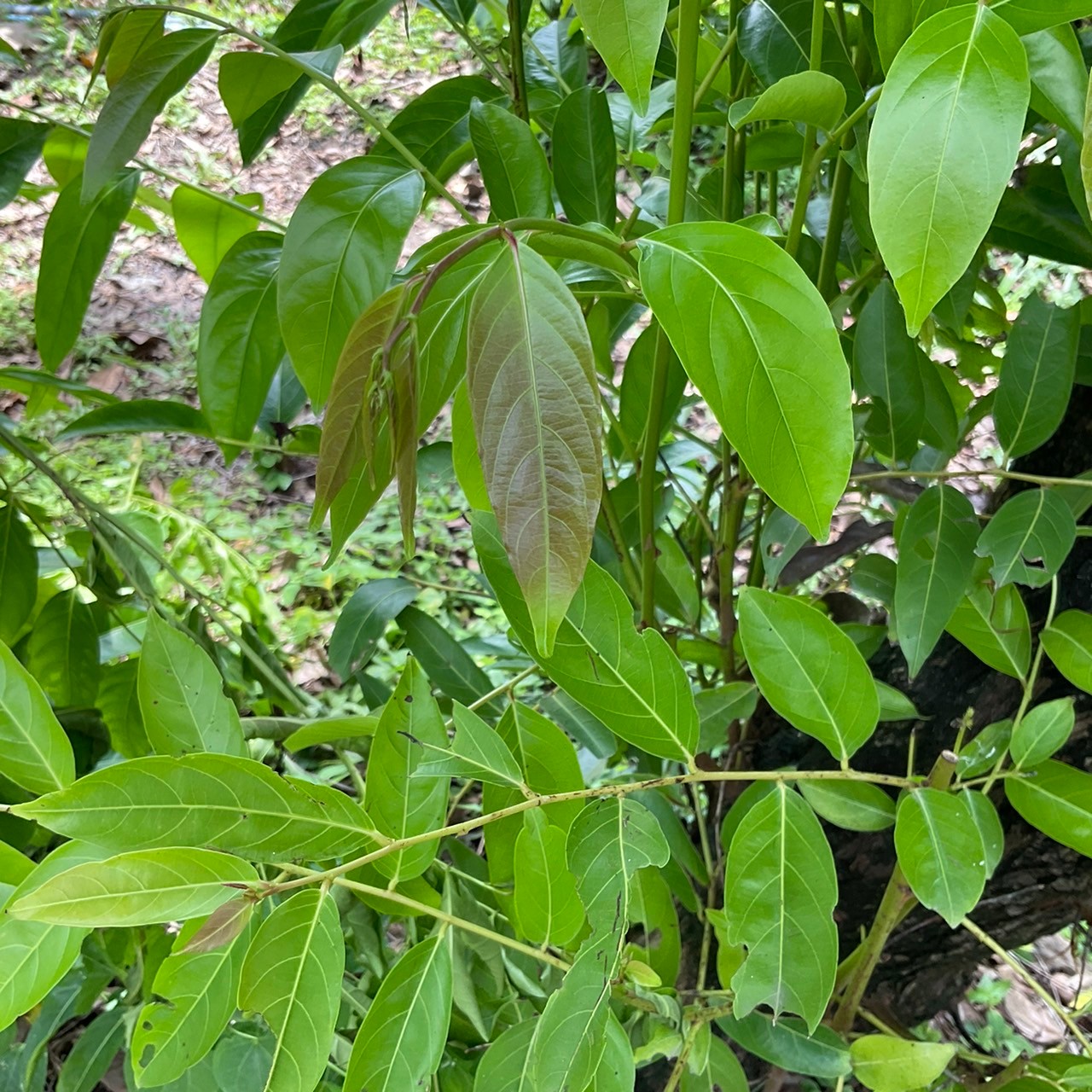 | ลักษณะใบ | ใบเป็นใบเดี่ยวเรียงสลับ 2 ข้างของกิ่งแผ่น ใบเป็นรูปรีหรือรูปรีไข่กลับ ผิวใบเกลี้ยงทั้ง 2 ด้าน ปลายใบแหลม โคนใบสอบ มีเสินแขนง ใบ 5-7 คู่ ใบเสีเขียวสด ยอดอ่อนมีสีแดง |