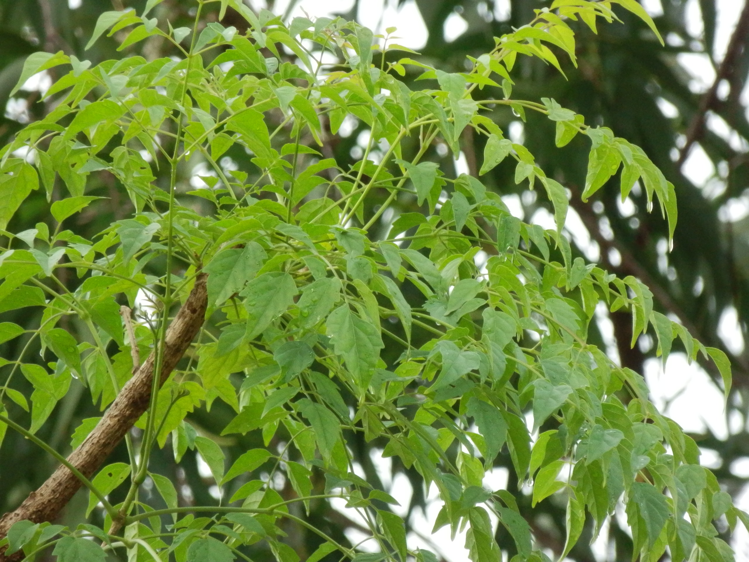 | ลักษณะใบ | ใบเป็นใบประกอบแบบขนนก 3 ชั้น กว้างประมาณ 13-20 เซนติเมตร ยาวประมาณ 16-26 เซนติเมตร ก้านใบยาว 3.5-6 เซนติเมตร ที่ตัวใบจะประกอบไปด้วยแกนกลาง ยาวประมาณ 13-19 เซนติเมตร มีใบย่อย 4-6 คู่ กว้างประมาณ 2.5-3 เซนติเมตร ยาวประมาณ 4-5 เซนติเมตร ลักษณะใบมีรูปร่างคล้ายรูปหอกแกมรูปไข่ ปลายใบเรียวแหลม ฐานใบเป็นรูปลิ่ม ขอบใบหยักเป็นซี่หยาบๆ เนื้อใบเกลี้ยงบางคล้ายกับกระดาษ |