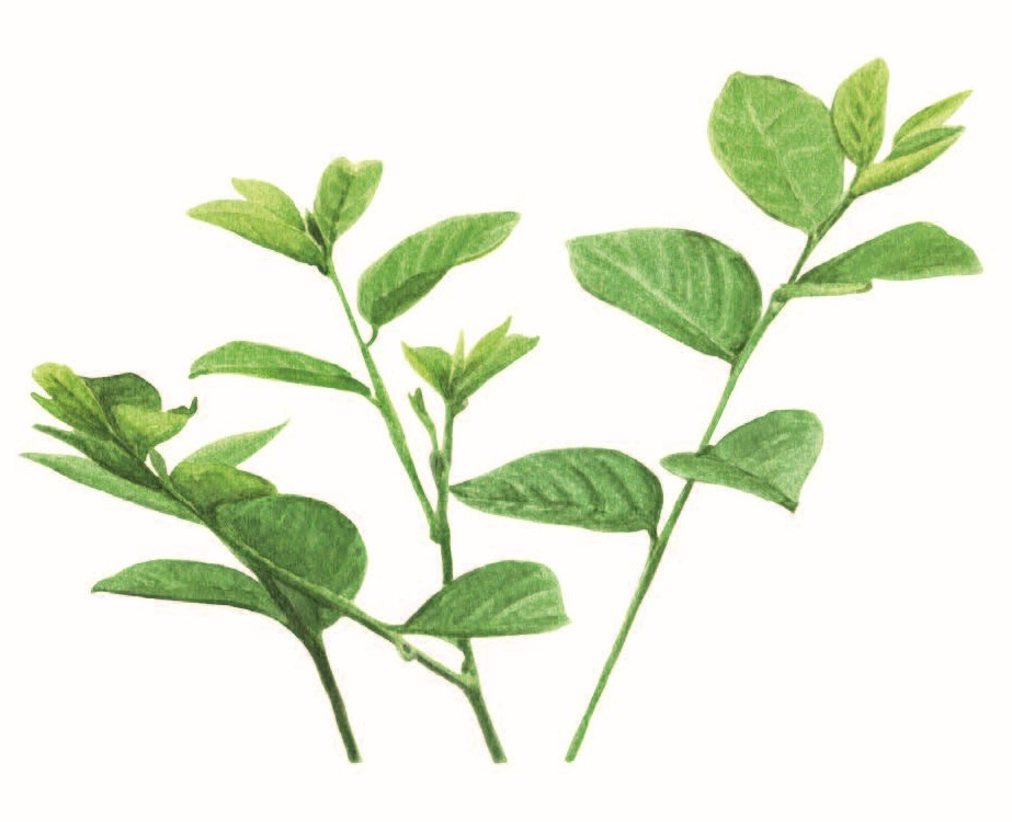 | ลักษณะวิสัย | เป็นไม้พุ่มขนาดเล็กถึงกลาง ลำต้นสูงประมาณ 0.1-4 เมตร ลำต้นกลม ตั้งตรง แตกกิ่งแขนงตั้งแต่ระดับล่าง แตกกิ่งแขนงมาก ทรงพุ่มหนาทึบ โคนลำต้นเป็นไม้เนื้อแข็ง เปลือกโคนลำต้นมีสีน้ำตาล ปลายลำต้นมีเปลือกสีเขียว กิ่งมีเปลือกสีเขียว เป็นไม้เนื้ออ่อน เปราะ หักง่าย เมื่อตัดแต่งกิ่งหรือตัดลำต้น 1 สัปดาห์ จะแทงยอดและกิ่งใหม่แทน |