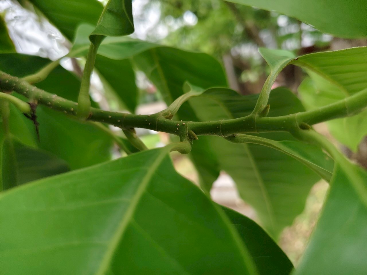 | ลักษณะใบ | ใบเป็นใบเดี่ยว ใบสีเขียว โคนใบมน ปลายใบแหลม ขอบใบเรียบ ใบหนาและมีขนาดใหญ่ กว้างประมาณ 8 เซนติเมตร และยาวประมาณ 20 เซนติเมตร |