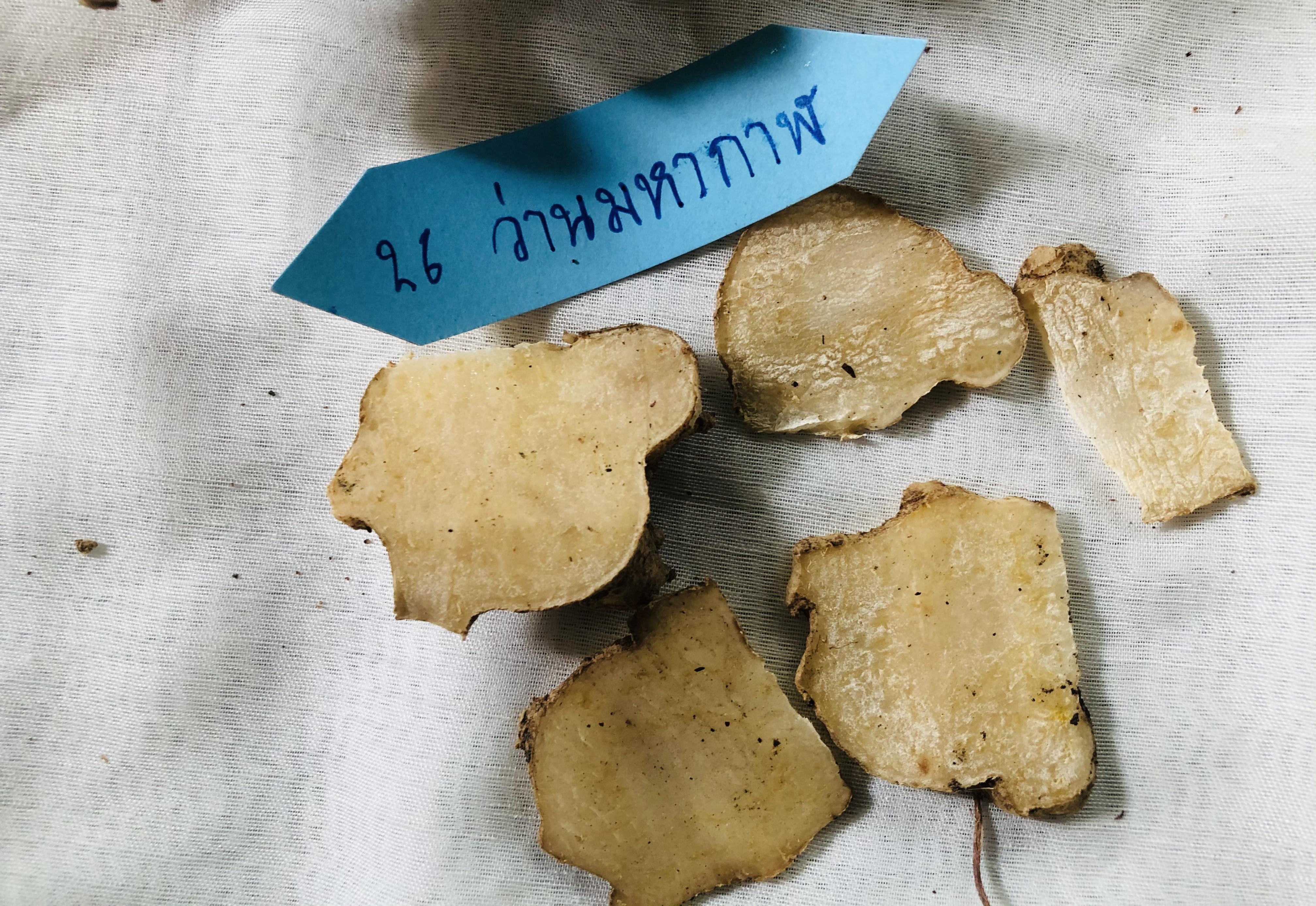 | สรรพคุณ | มีความเด่นในเรื่องพุทธคุณ อยู่ยงคงกระพัน ฟันแทงไม่เข้า หากปลูกไว้ในบริเวณบ้านจะคุ้มครองป้องกันภัยพิบัติต่าง ๆ ไม่ให้เข้ามาใกล้ เหง้าใต้ดินรสเย็นปร่า มีคุณสมบัติคล้ายกับแอลกอฮอล์ล้างแผล ช่วยถอนพิษแมลงสัตว์กัดต่อย ห้ามเลือด รักษาแผลสด แผลเน่าเปื่อย ฝี หนอง พุพองทั่วไปและแผลที่เกิดจากการติดเชื้อ HIV แก้อาการอักเสบ รักษาโรคงูสวัดและโรคภูมิแพ้ การนำมาใช้ : ใช้หัวสดหั่นเป็นแว่นบาง ๆ หรือโขลกละเอียด นำไปพอกบริเวณที่เป็นแผลเน่าเปื่อย แผลพุพอง เป็นหนอง ช่วยดูดน้ำเหลืองเสียและฆ่าเชื้อ ลดอาการคันและแสบร้อน ช่วยสมานแผลผู้ป่วยที่ติดเชื้อ HIV หรือนำไปพอกทั่วใบหน้า ช่วยรักษาสิว ฝ้า กระ หรือ บดเป็นผงละเอียด ใช้ชงเป็นชาสำหรับสตรีหลังคลอดดื่มเป็นยาขับประจำเดือนและรักษามดลูก |