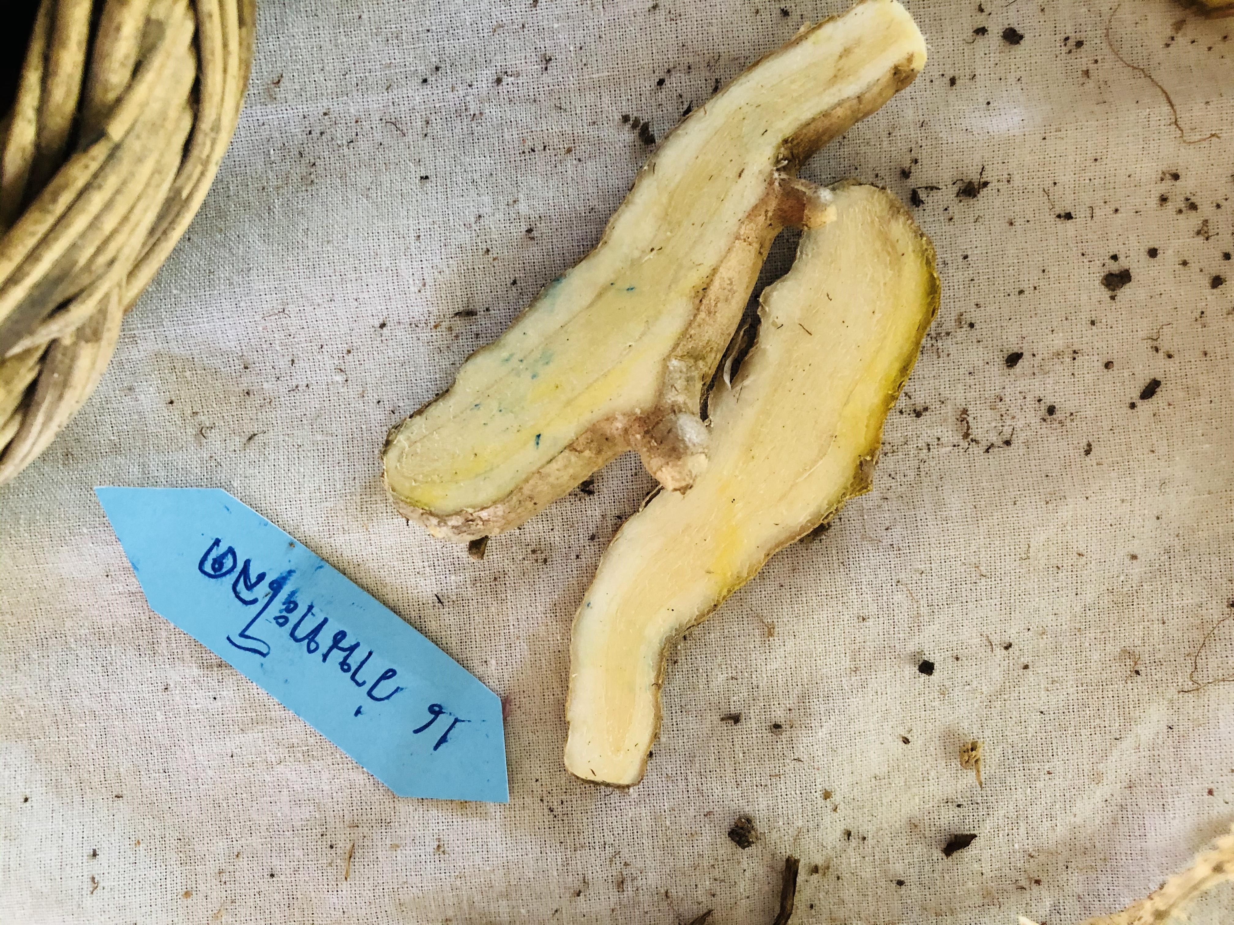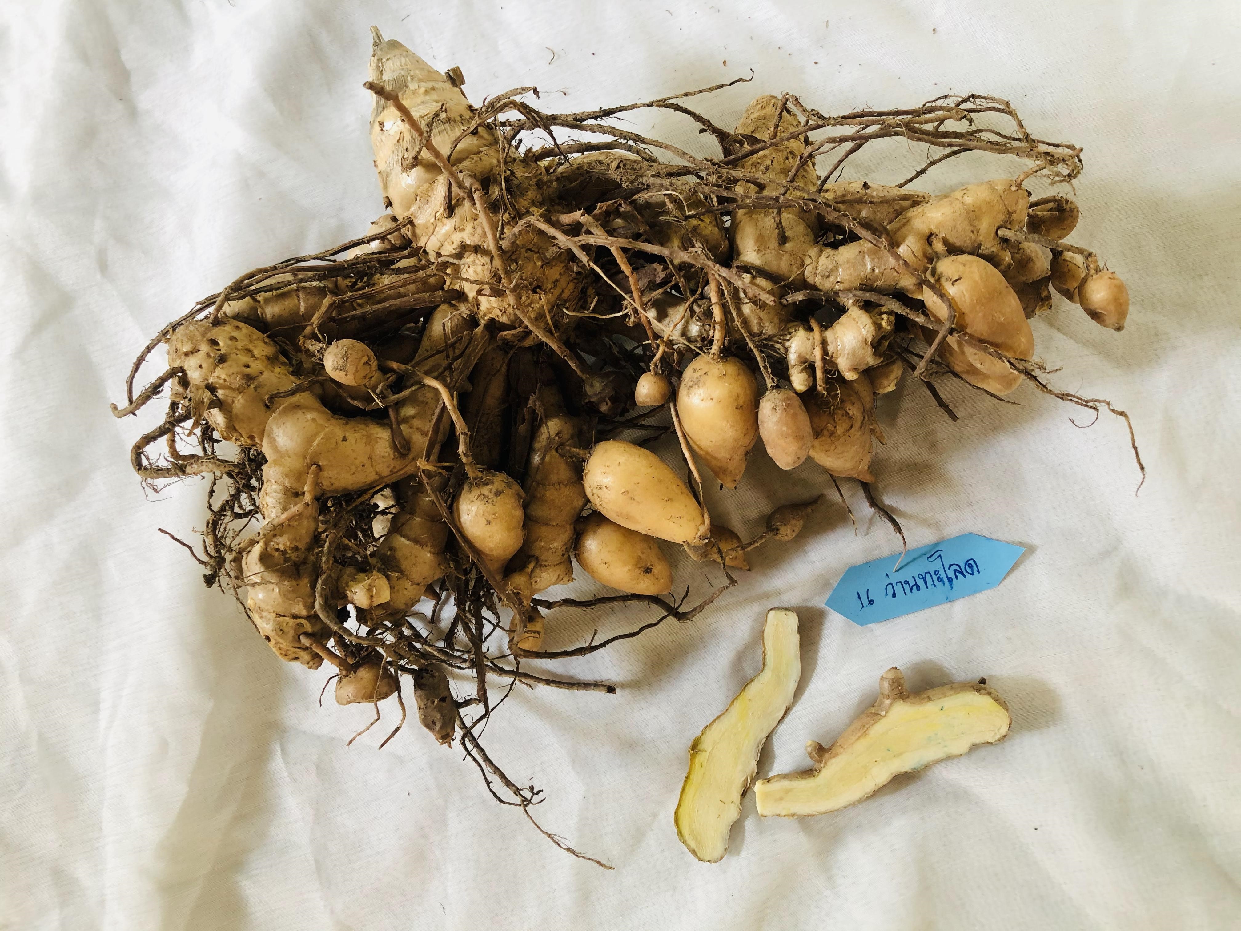| ลักษณะวิสัย | เหง้าหลักเป็นรูปวงรีคล้ายไข่ มีแขนงแตกออกสองข้าง เปลือกนอกมีสีน้ำตาลอมเหลือง เนื้อในสีขาวขุ่นอมเหลือง |
