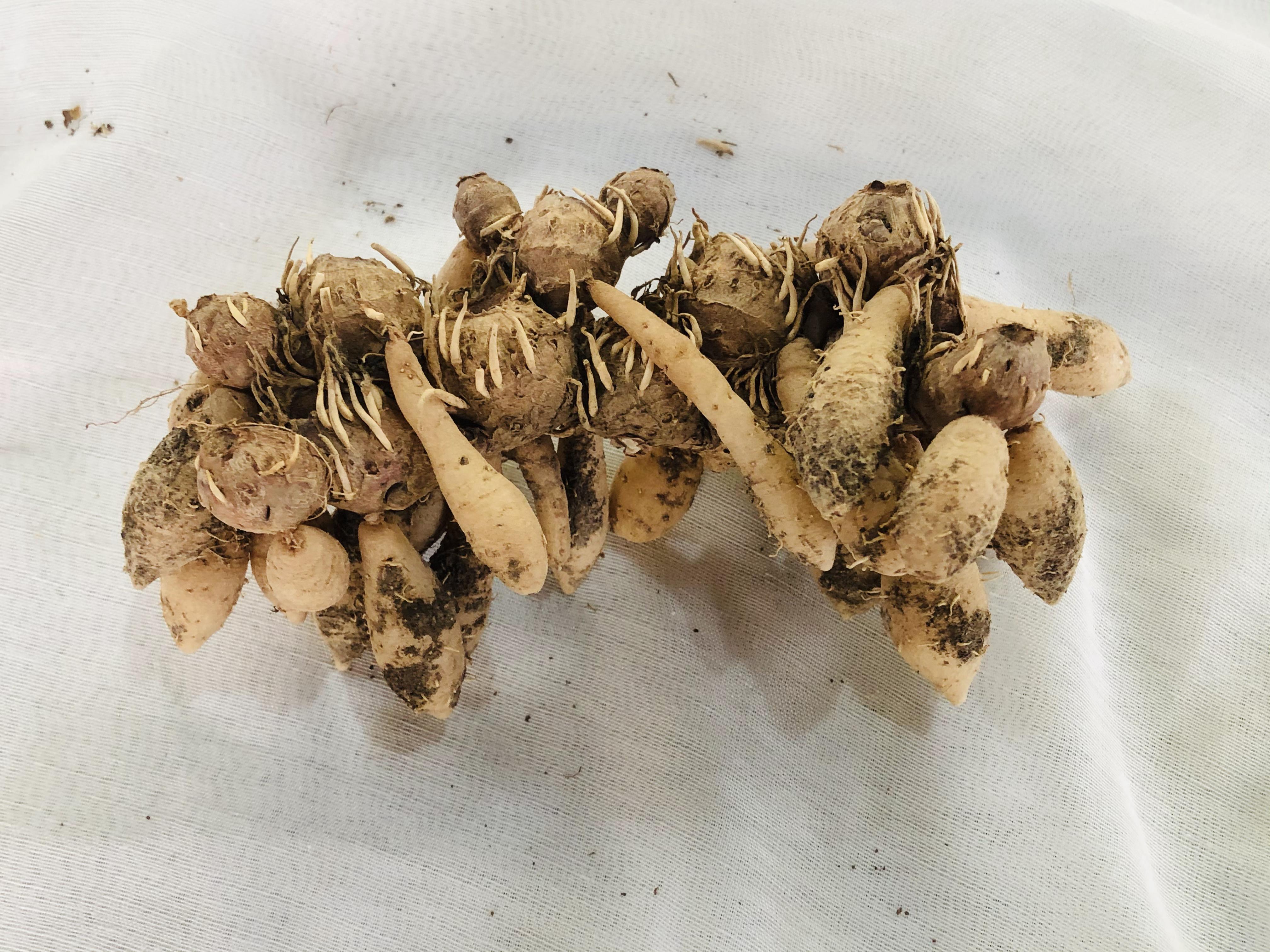| ลักษณะวิสัย | หัวเหง้าหลักมีลักษณะกลม มีรากห่อหุ้มตามเหง้า เนื้อในสีขาวขุ่นอมเหลือง กลิ่นจาง ไม่ฉุน |