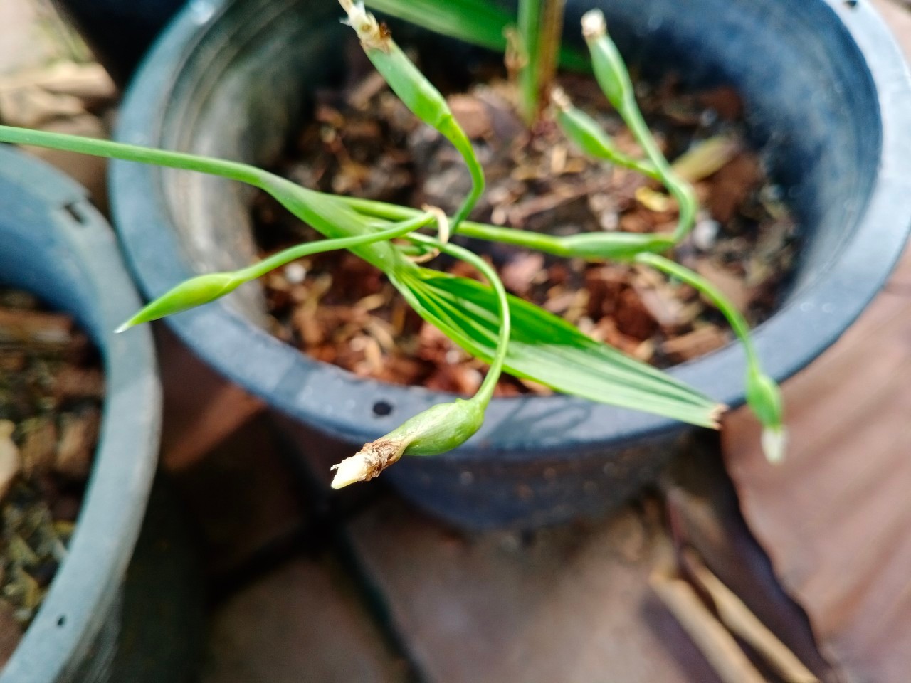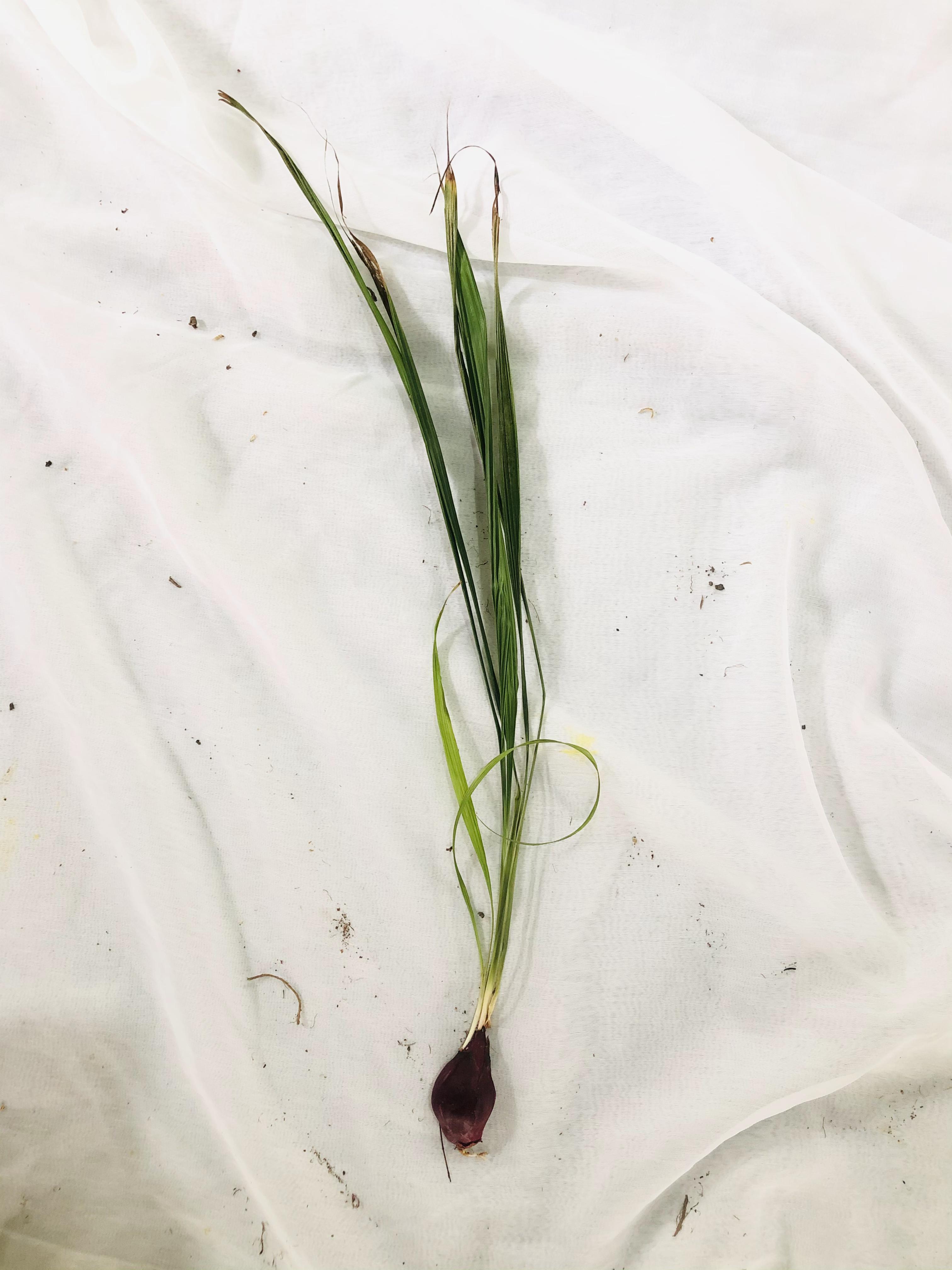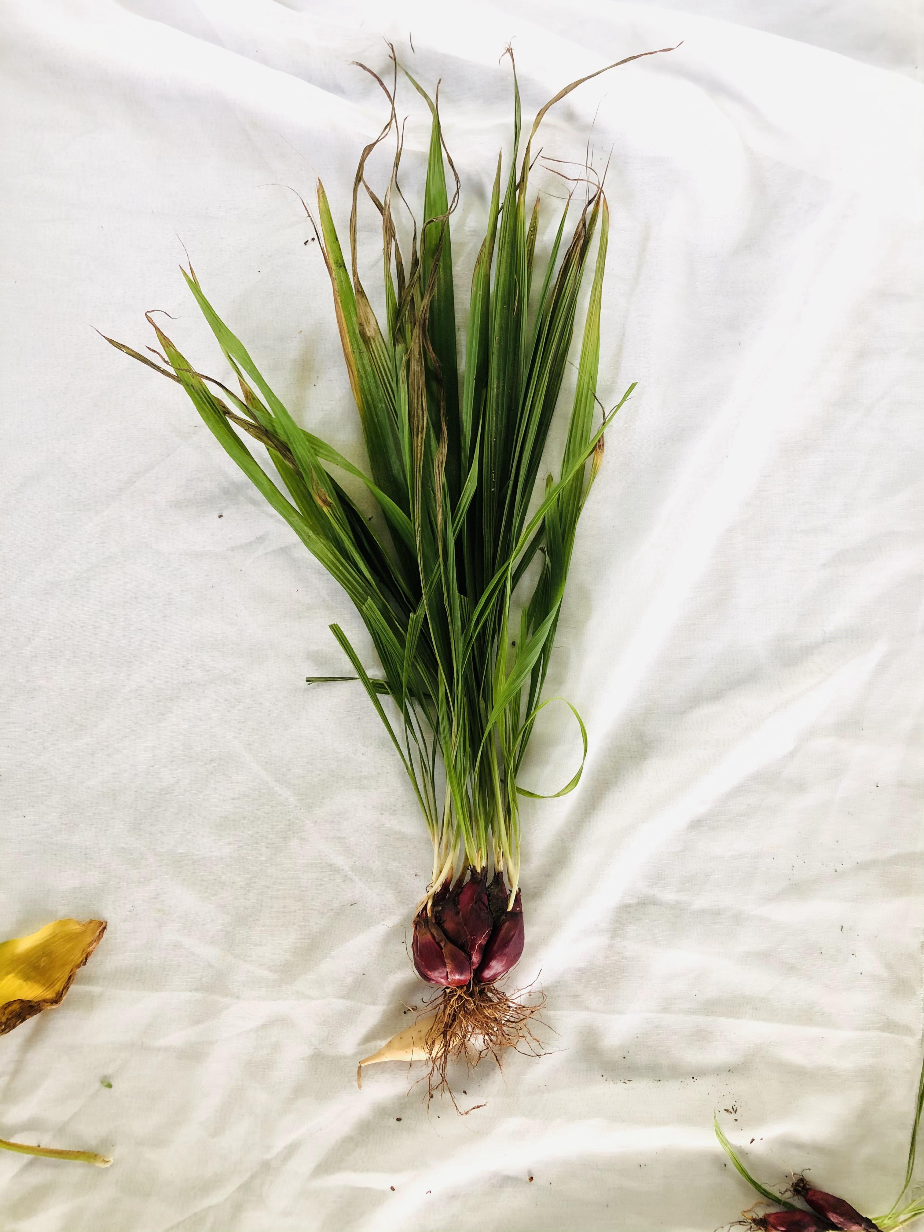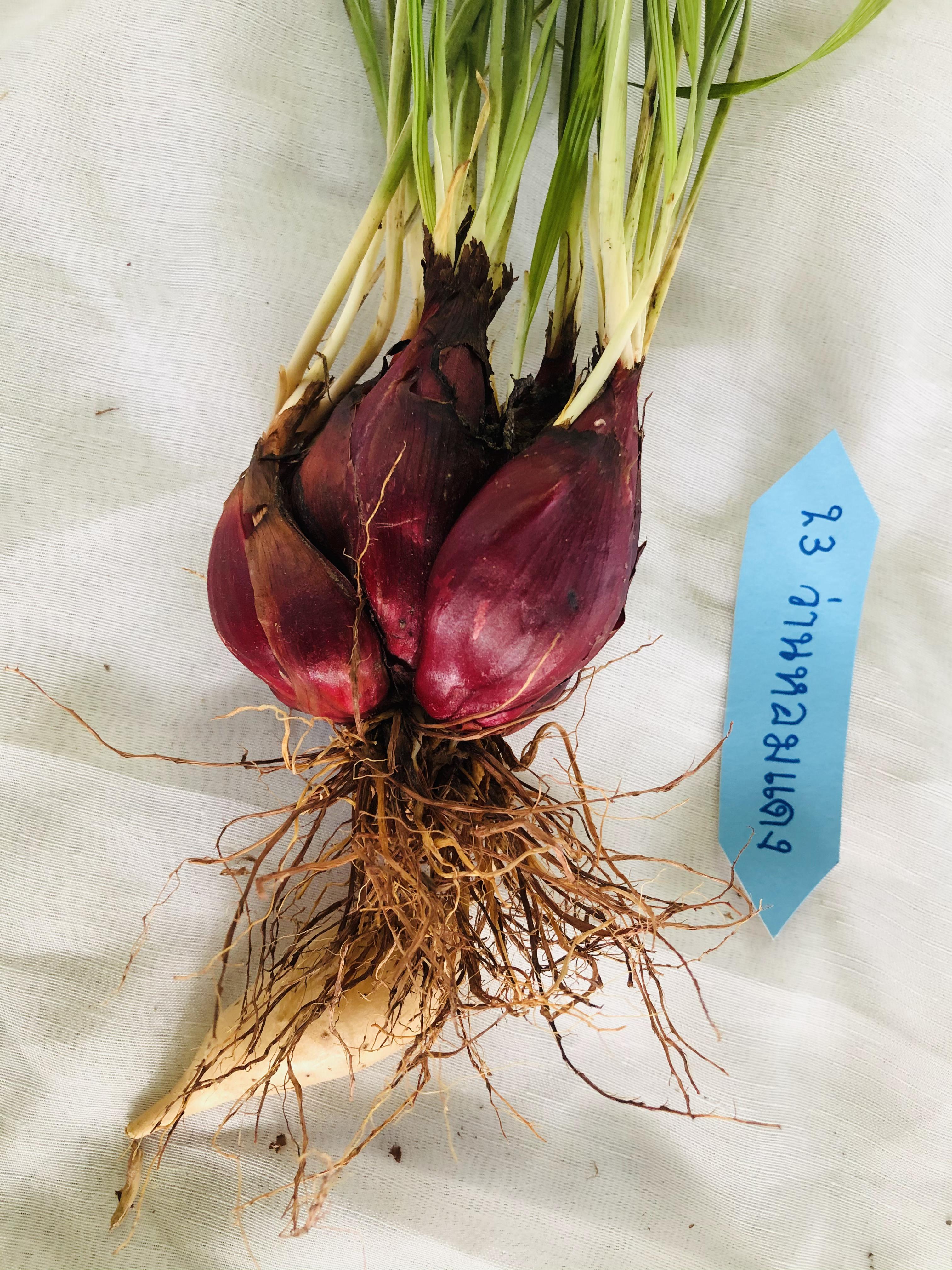 | ลักษณะวิสัย | เป็นพืชล้มลุก หัวใต้ดินลักษณะยาว รี เปลือกหุ้มหัวสีแดงเข้มอมม่วงเป็นชั้น ๆ ใบรูปหอกปลายใบแหลม มีกลิ่นฉุนคล้ายหอมแดง |