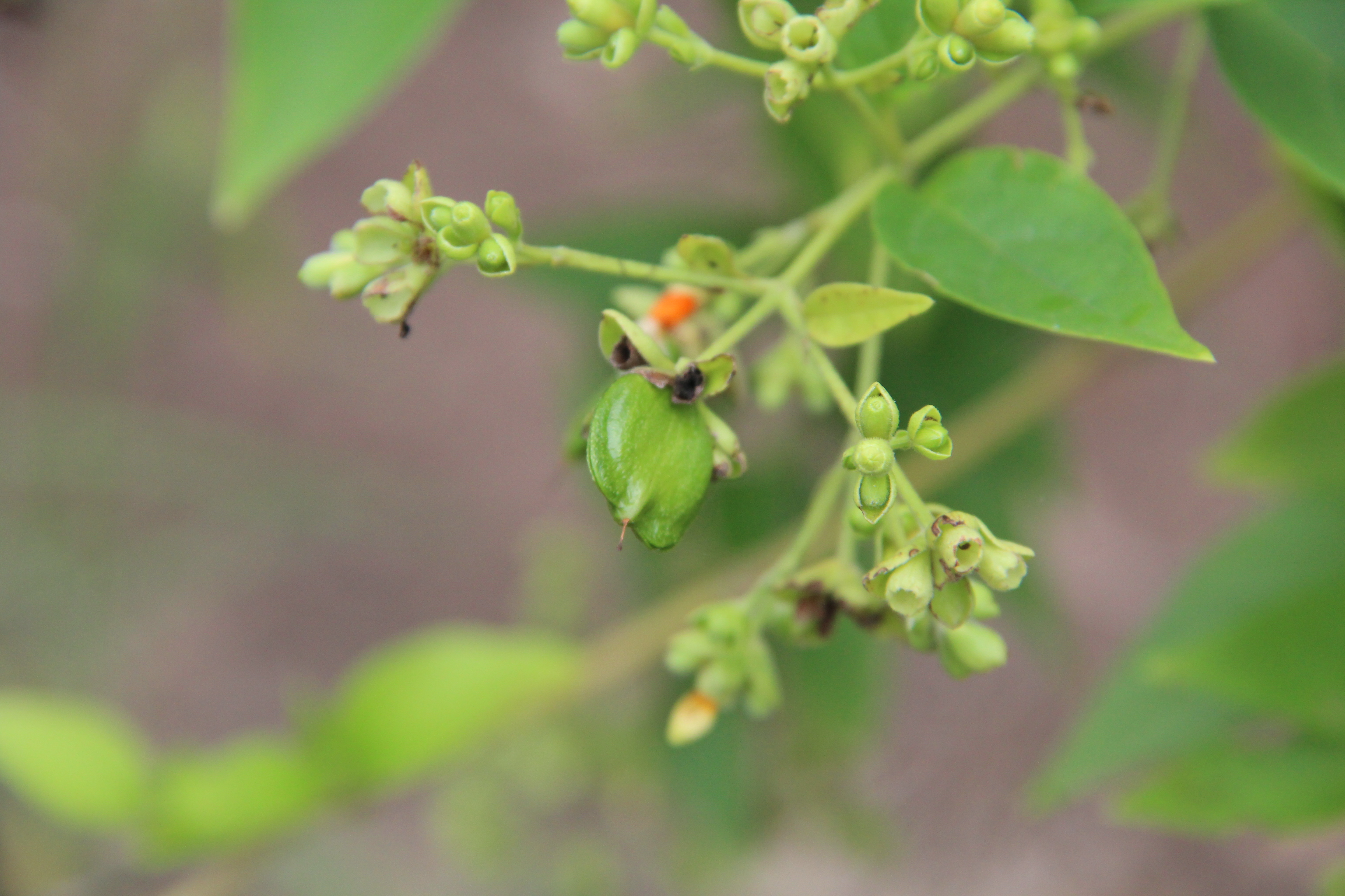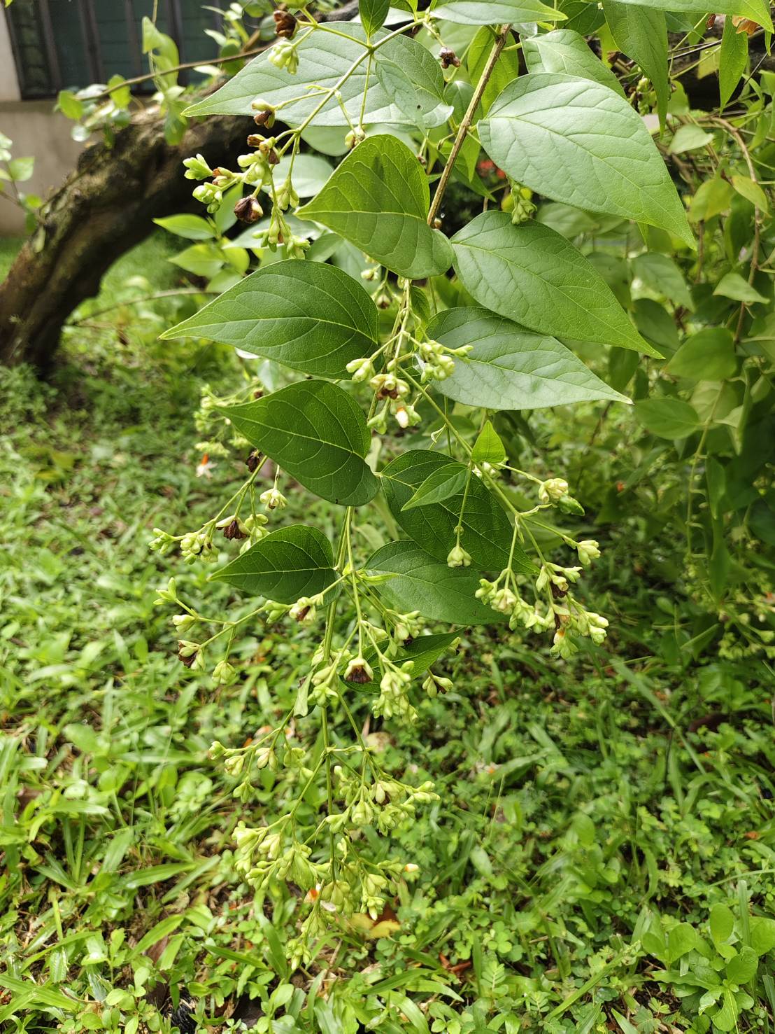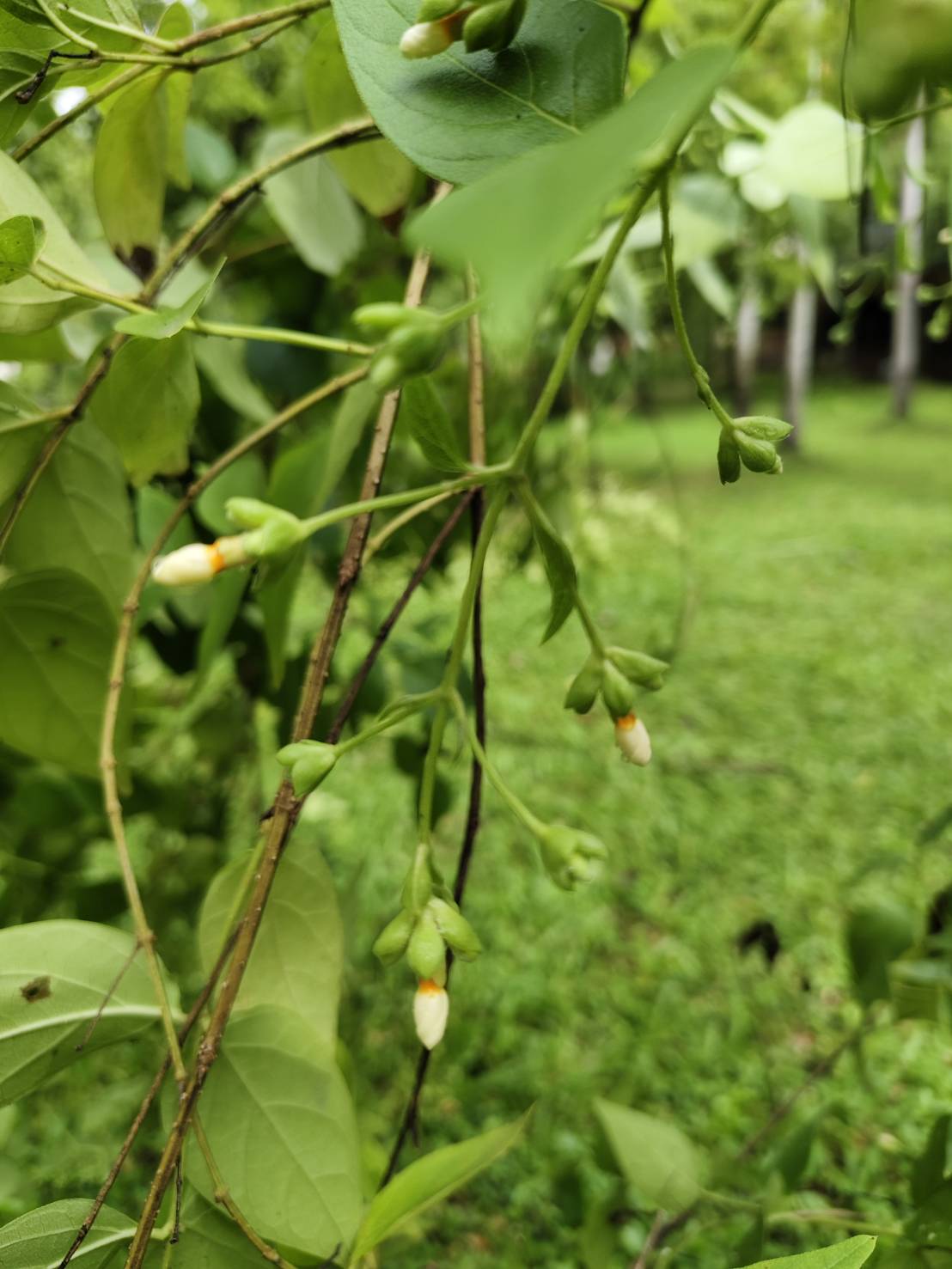 | ลักษณะดอก | ออกดอกเป็นช่อ ออกตามซอกใบหรือง่ามใบ ก้านช่อดอกยาวประมาณ 1.2-2 เซนติเมตร มีใบประดับรูปคล้ายใบเล็ก ๆ อยู่ 1 คู่ที่ก้านช่อดอก ในแต่ละช่อดอกจะมีดอกอยู่ประมาณ 3-7 ดอก ดอกเป็นดอกย่อยสีขาวและมีกลิ่นหอม ดอกจะบานในช่วงเย็นและจะร่วงในช่วงเช้าวันรุ่งขึ้น ไม่มีก้านดอก ในแต่ละดอกจะมีใบประดับอยู่ 1 ใบ |