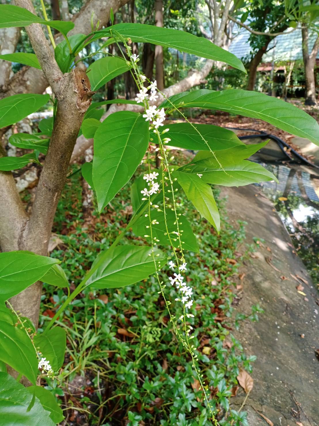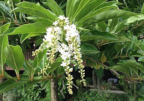 | ลักษณะดอก | ดอกออกเป็นกลุ่มช่อ เป็นกระจุก กระจุกละ 5-8 ช่อ ช่อยาว แต่ละช่อมีดอกเล็กๆสีขาวตลอดทั้งช่อ มีกลิ่นหอม ออกดอกตลอดปี หอมแรงตอนกลางคืน ดอกร่วงง่าย |