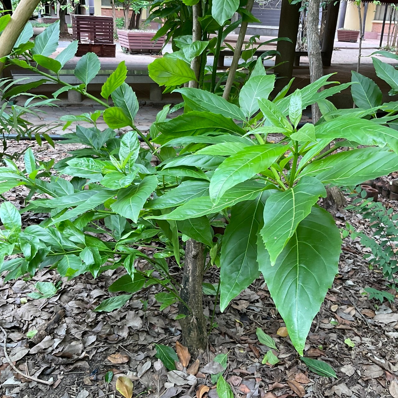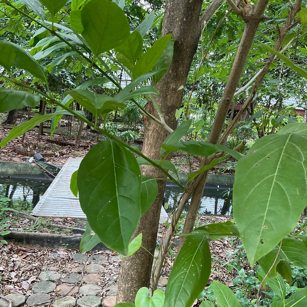 | ลักษณะใบ | ใบเป็นใบเดียว มีสีเขียว รูปไข่ ปลายใบแหลมคล้ายหอก โคนสอบ แผ่นใบเรียบ ใบค่อนข้างบาง โปร่ง เป็นมัน เส้นกลางใบหนา |