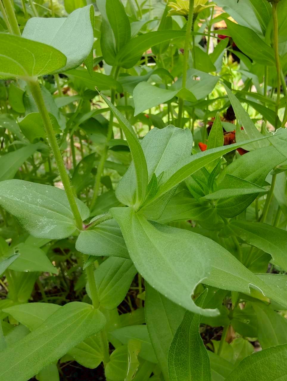 | ลักษณะใบ | ใบเป็นใบเดี่ยว เรียงตรงข้าม ใบรูปหอกหรือรูปไข่แกมรูปขอบขนาน ก้านใบสั้น ปลายแหลม โคนมน ขอบเรียบ ผิวมีขนหยาบ |
