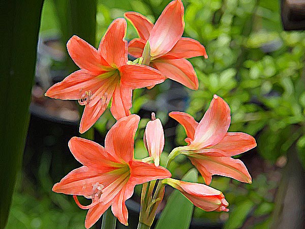 | ลักษณะดอก | ดอกออกเป็นช่อ โดยก้านดอกจะแทงขึ้นจากกอ ยาวประมาณ 25-30 เซนติเมตร ดอกออกตรงปลายก้านดอก ดอกมีสีชมพู แยกออกเป็น 6 กลีบ เมื่อบานเต็มที่จะกว้างประมาณ 6-8 เซนติเมตร และจะทยอยกันบานทีละ 4 ดอก |
