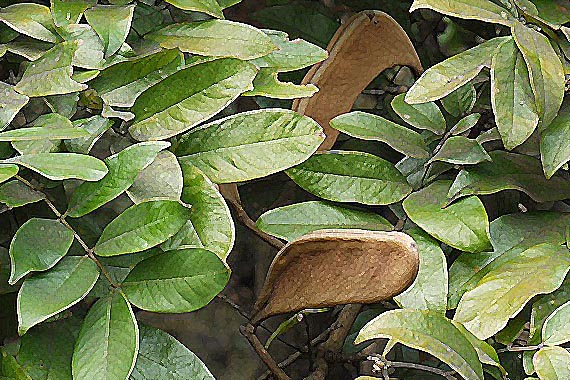 | ลักษณะผล | ผลเป็นฝักแบน แข็ง เป็นรูปขอบขนาน เรียวและโค้งงอที่ส่วนปลาย ฝักมีความยาวประมาณ 7-10 เซนติเมตร ผิวฝักเรียบมีสีน้ำตาลอมเทา ไม่มีขนขึ้นปกคลุมและไม่มีก้าน เมื่อฝักแก่จะแตกออกเป็น 2 ซีก และเปลือกของฝักที่แตกมักจะม้วนบิดงอ ในหนึ่งฝักจะมี 6-10 เมล็ด |