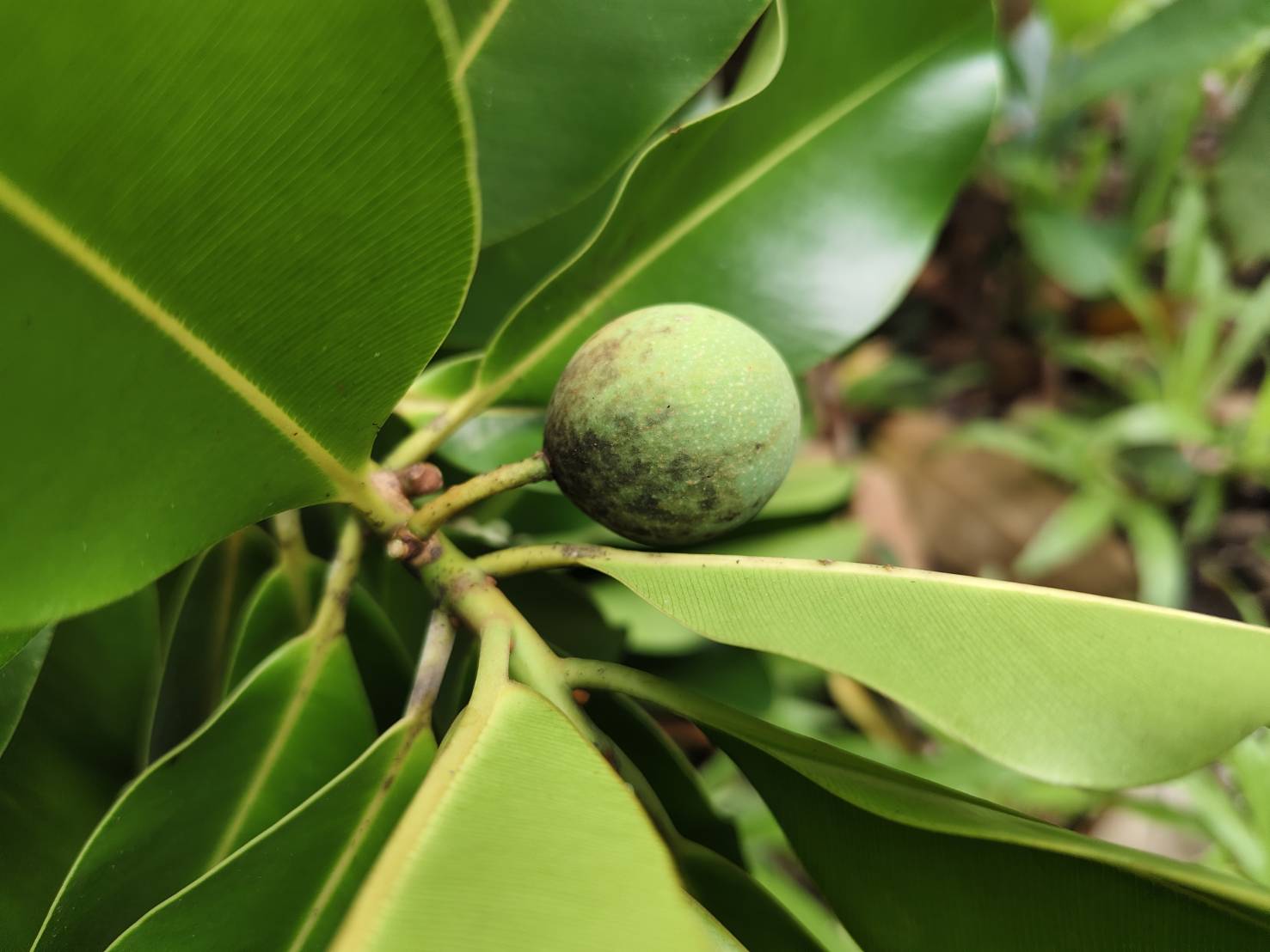 | ลักษณะผล | ผล ค่อนข้างกลมและฉ่ำน้ำ เป็นรูปไข่และแข็ง มีขนาดเส้นผ่านศูนย์กลางประมาณ 2-3 เซนติเมตร ผิวผลเรียบ ปลายผลเป็นติ่งแหลม ผลสดสีเขียว เมื่อสุกจะเป็นสีเหลือง ผลแห้งจะย่นและเปลี่ยนเป็นสีออกน้ำตาลปนแดงอ่อน ภายในผลมีเมล็ดอยู่ 1 เมล็ด |