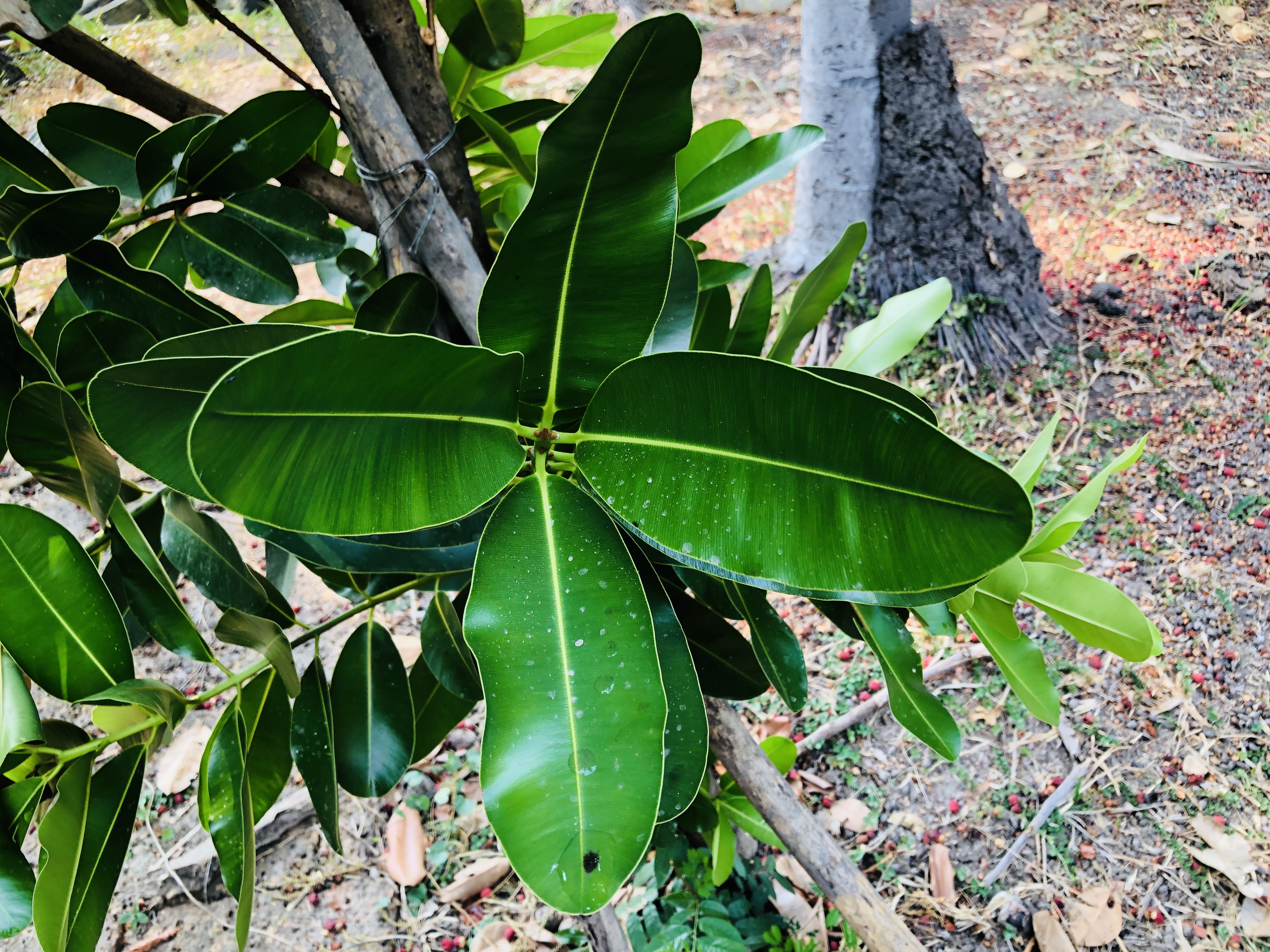 | ลักษณะวิสัย | เป็นไม้ยืนต้นขนาดกลางถึงขนาดใหญ่ ไม่ผลัดใบ เรือนยอดเป็นทรงพุ่มทึบ ไม่เป็นระเบียบ ลำต้นค่อนข้างสั้นและมักบิดแตกเป็นกิ่งใหญ่ ๆ จำนวนมาก สูงประมาณ 8-20 เมตร เปลือกต้นเป็นสีน้ำตาลเข้มหรือสีแดงเข้ม เมื่อแก่จะแตกเป็นร่อง ภายในมียางสีเหลืองใส |