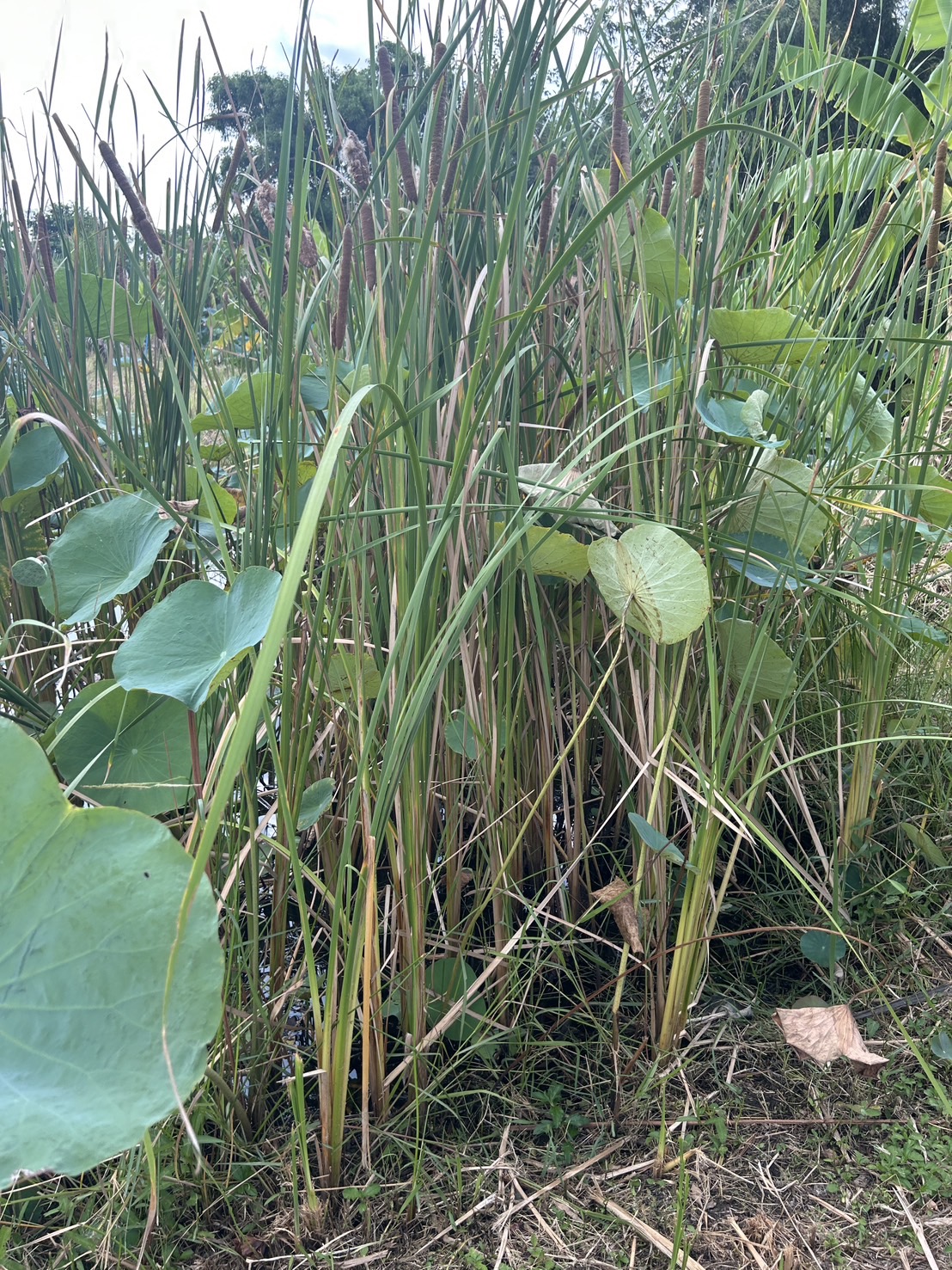| ลักษณะวิสัย | เป็นไม้ล้มลุกที่มีอายุหลายปี เหง้ากลม แทงหน่อขึ้นเป็นระยะสั้น ๆ ลำต้นตั้งตรง สูงประมาณ 1.5-3 เมตร เจริญเติบโตได้ดีในพื้นที่ชุ่มน้ำ |