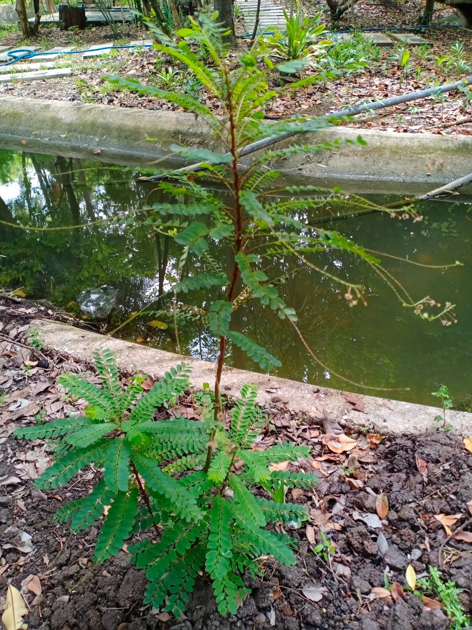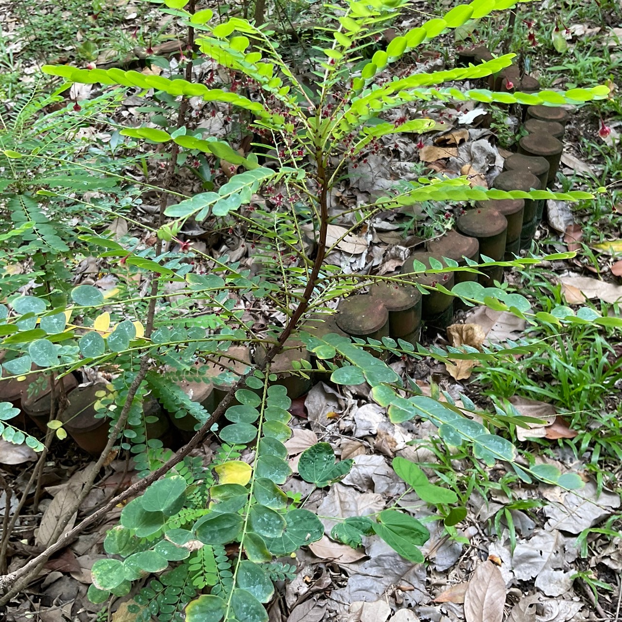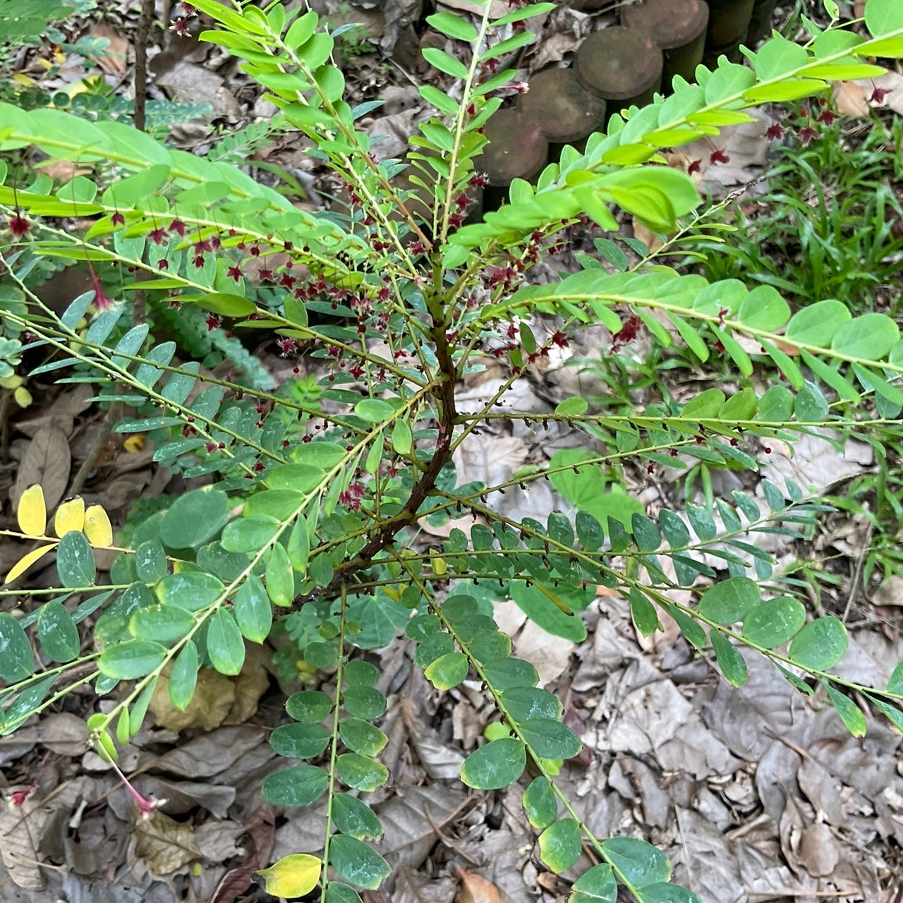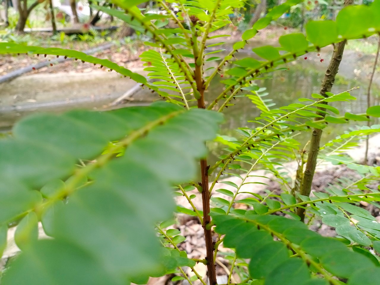 | ลักษณะใบ | ใบเป็นใบเดี่ยว ออกเรียงสลับแน่นในระนาบเดียวกันบริเวณปลายยอด มีใบย่อยประมาณ 15-30 คู่ ในแต่ละกิ่งย่อย ลักษณะของใบย่อยเป็นรูปขอบขนานเบี้ยว หรือเป็นรูปขอบขนานแกมไข่ ปลายใบมน ส่วนขอบใบเรียบ ปลายสุดมีติ่งแหลมขนาดเล็ก ใบย่อยกว้างประมาณ 0.8-1.3 เซนเติเมตร ยาวประมาณ 1.5-2.5 เซนติเมตร แผ่นใบแผ่และบาง เรียบทั้ง 2 ด้าน ใบสีเขียว หลังใบเป็นสีเทาแกมเขียว |