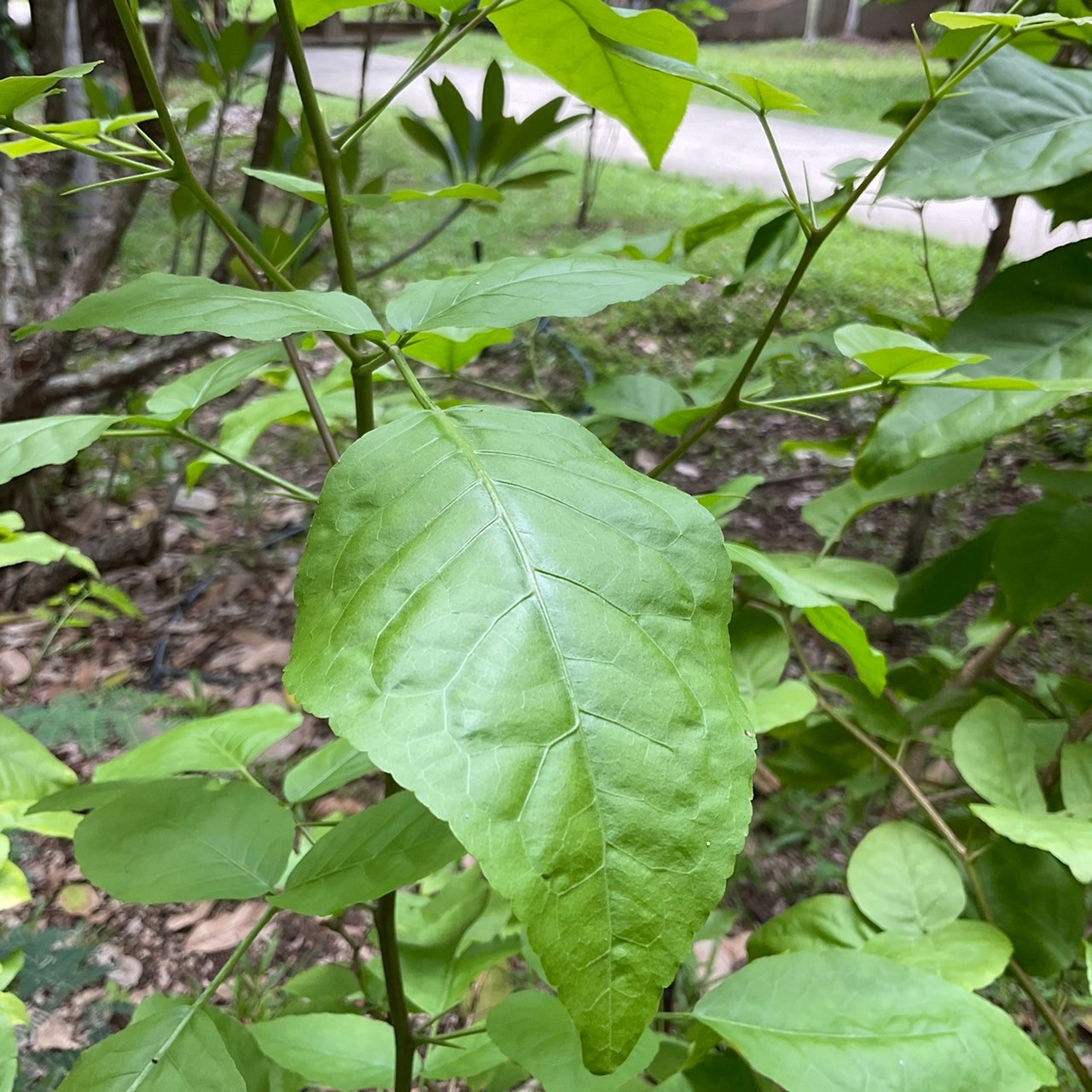 | ลักษณะใบ | ใบเป็นใบประกอบ ก้านใบยาว 3-5 เซนติเมตร ประกอบด้วยใบย่อย 3 ใบ ใบย่อยเป็นรูปไข่ ใบย่อยตรงกลางมีขนาดใหญ่สุด ใบกว้าง 3-6 เซนติเมตร ยาว 4-12 เซนติเมตร ซึ่งใหญ่กว่าใบด้านข้างทั้งสองใบ ที่กว้างประมาณ 2.5-5 เซนติเมตร ยาวประมาณ 3-10 เซนติเมตร ใบมีรูปทรงรูปไข่หรือรูปหอก ขอบใบหยัก ปลายใบแหลม แผ่นใบเรียบ แผ่นใบด้านบนมีสีเขียวค่อนข้างมัน แผ่นใบด้านล่างมีสีจางกว่า หานำใบส่องใต้แดดจะมองเห็นมีต่อมน้ำมันเป็นจุด ๆ |