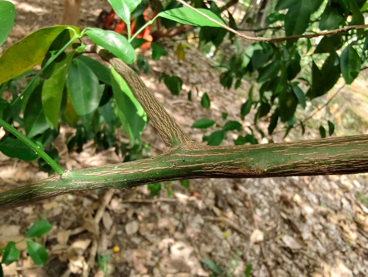 | ลักษณะวิสัย | เป็นไม้ต้น สูง 3-8 เมตร เปลือกลำต้นสีดำ ทรงพุ่มกลม มีกิ่งก้านมาก กิ่งอ่อนเป็นเหลี่ยม กิ่งมีหนามแหลมสั้น |
