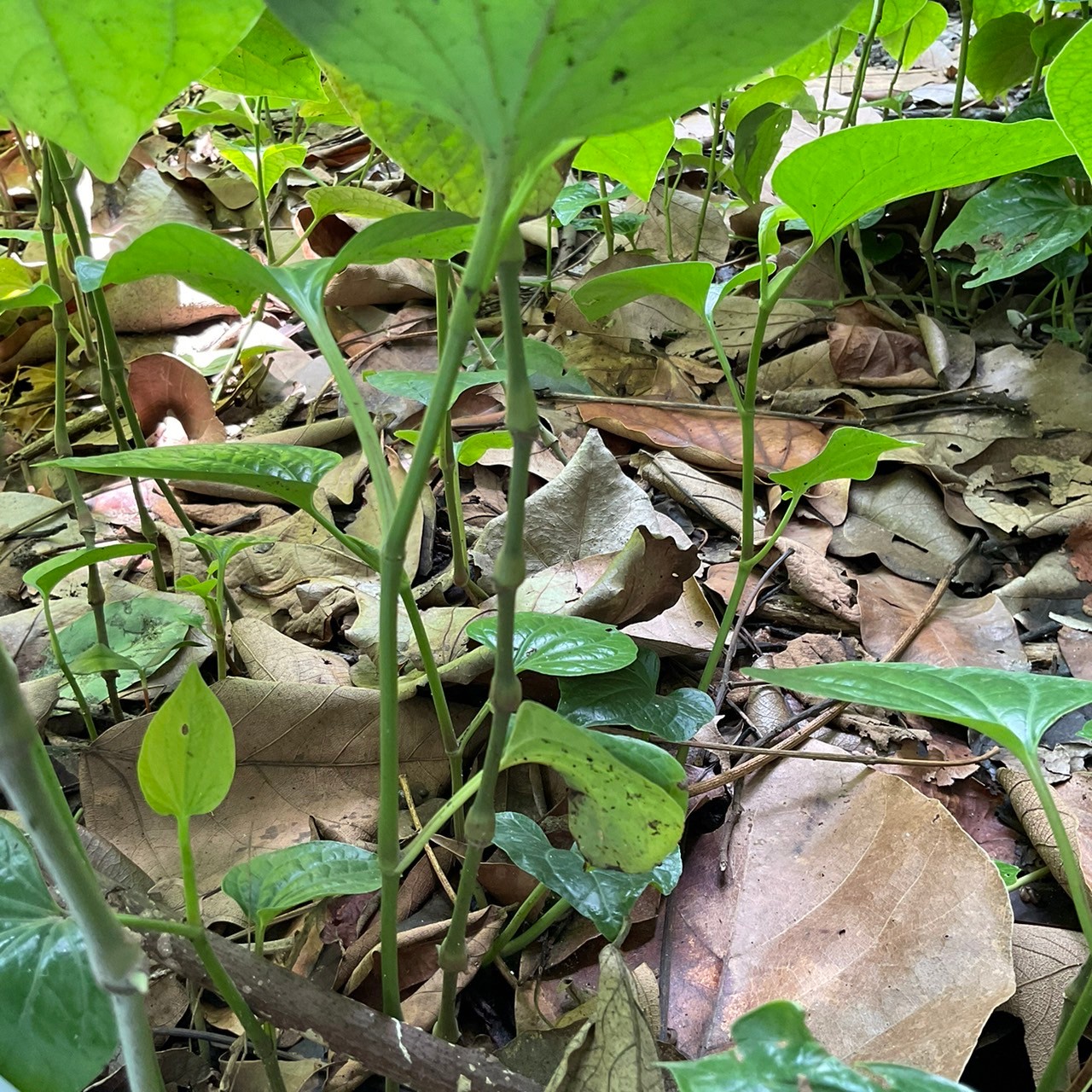 | ลักษณะใบ | ใบเป็นใบเดี่ยว ออกเรียงสลับ แผ่นใบบาง ผิวใบเรียบ มีสีเขียวเข้มเป็นมัน ใบรูปหัวใจ กว้าง 5-10 เซนติเมตร ยาว 7-15 เซนติเมตร ปลายใบแหลม โคนใบเว้า ใบออกตรงกันข้าม มีเส้นใบประมาณ 7 เส้น แทงออกจากฐานใบ |