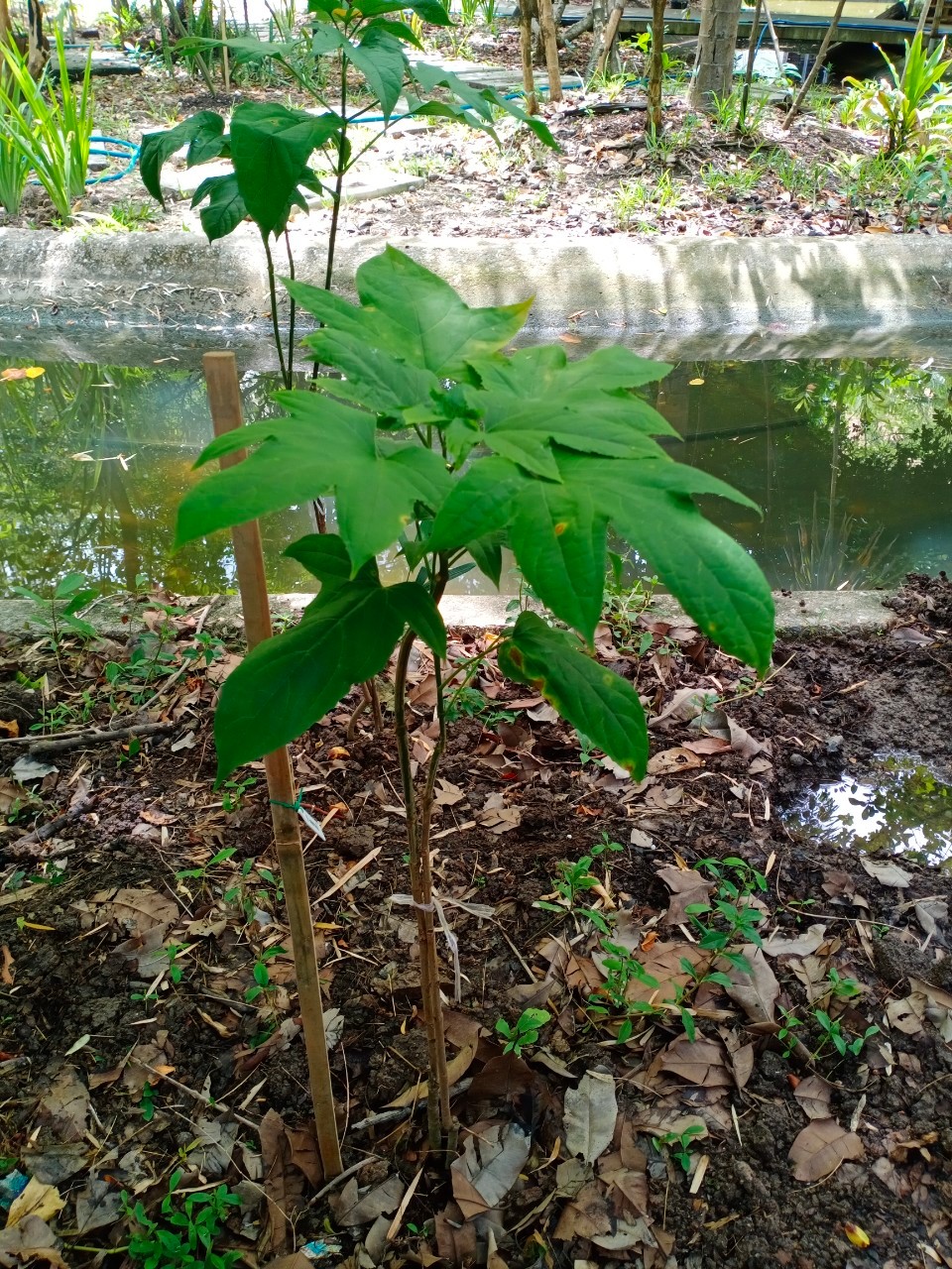 | ลักษณะวิสัย | เป็นไม้พุ่มสูง มีลำต้นตรงเป็นเหลี่ยม ไม่มีกิ่ง แต่มีก้านใบแตกออกจากตรงลำต้นโดยตรง ลำต้นสูงได้ถึง 3 เมตร เปลืองต้นมีลักษณะเรียบ เป็นสีน้ำตาลแกมเขียว ขยายพันธุ์ด้วยการใช้เมล็ด |
