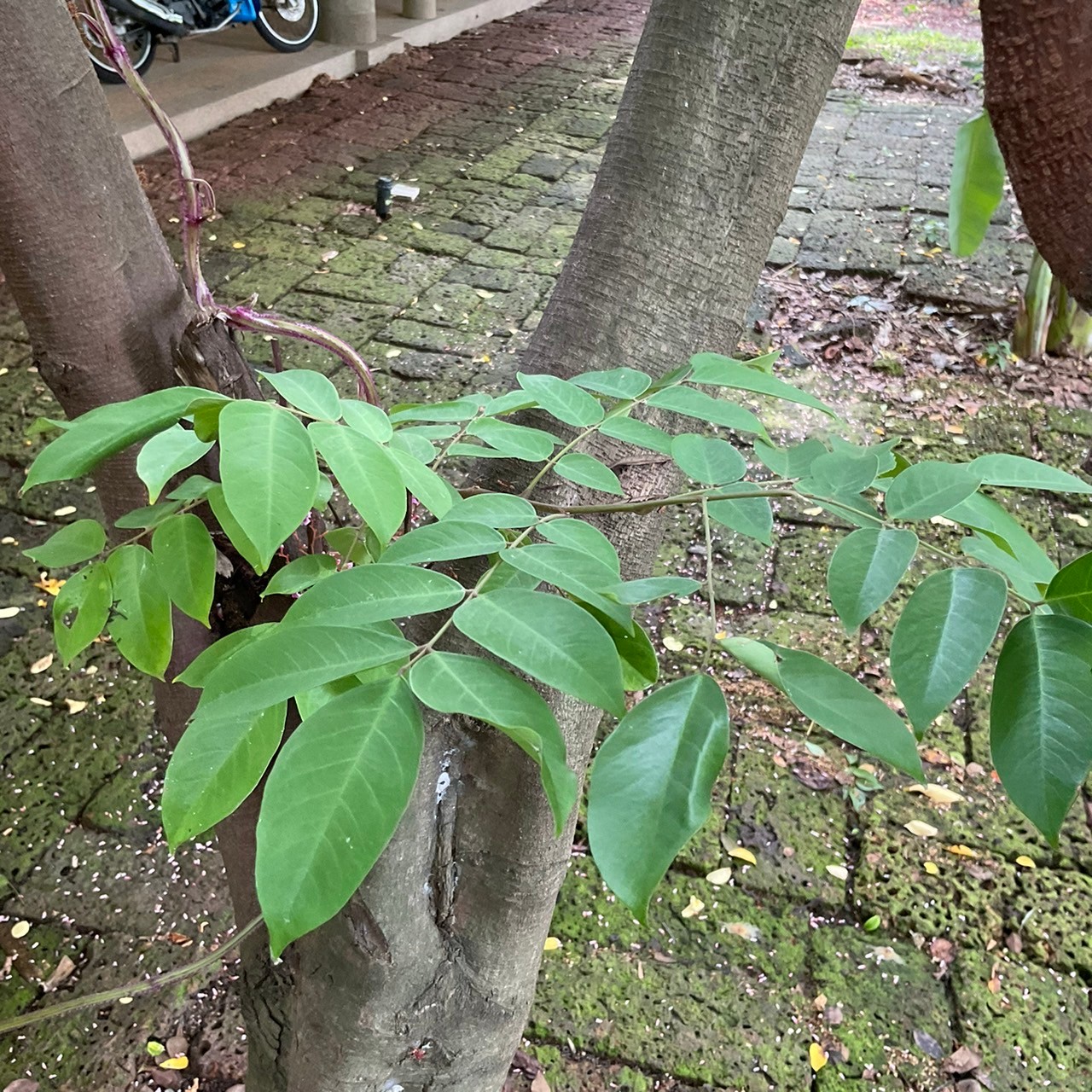 | ลักษณะใบ | ใบเป็นใบประกอบ มีก้านใบยาว ใบมีลักษณะทรงรีเรียว โคนมน ปลายรี ออกใบเรียงสลับ ออกตรงข้ามกัน ใบหยาบ สากมือ มีสีเขียว |