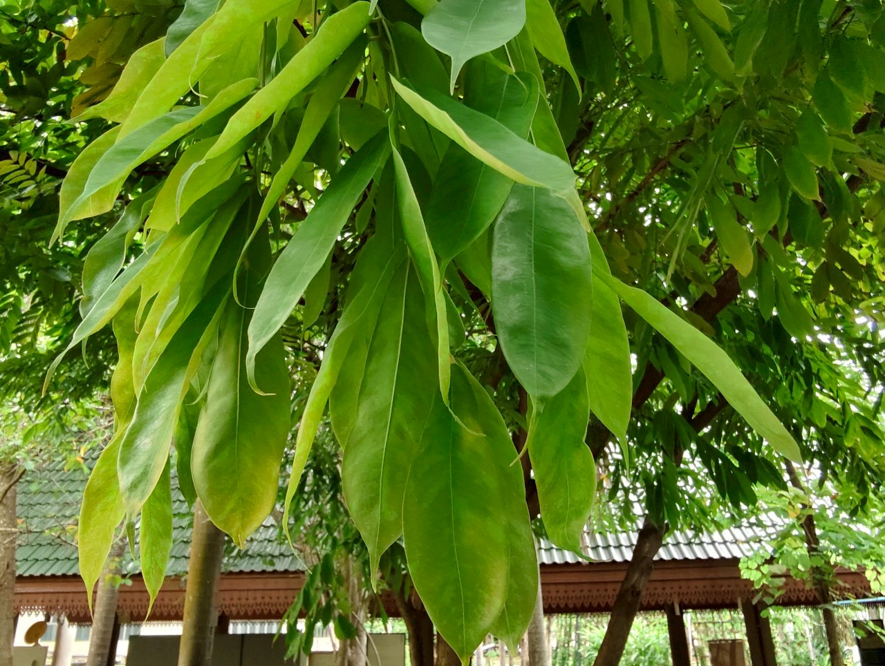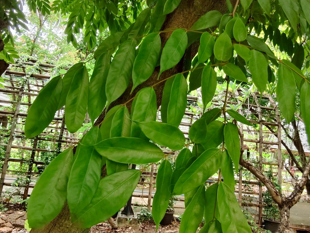 | ลักษณะใบ | ใบเป็นใบประกอบแบบขนนก เรียงสลับ ใบย่อยมี 12-18 คู่ ใบรูปรีหรือรูปขอบขนานแกมรูปใบหอกกลับ กว้าง 2.5-5.5 เซนติเมตร ยาว 5-18 เซนติเมตร ปลายใบเรียวแหลมยาวคล้ายหาง โคนใบสอบหรือมน เบี้ยว ขอบใบเรียบ แผ่นใบสีเขียวอมเหลือง ใบอ่อนสีแดง |