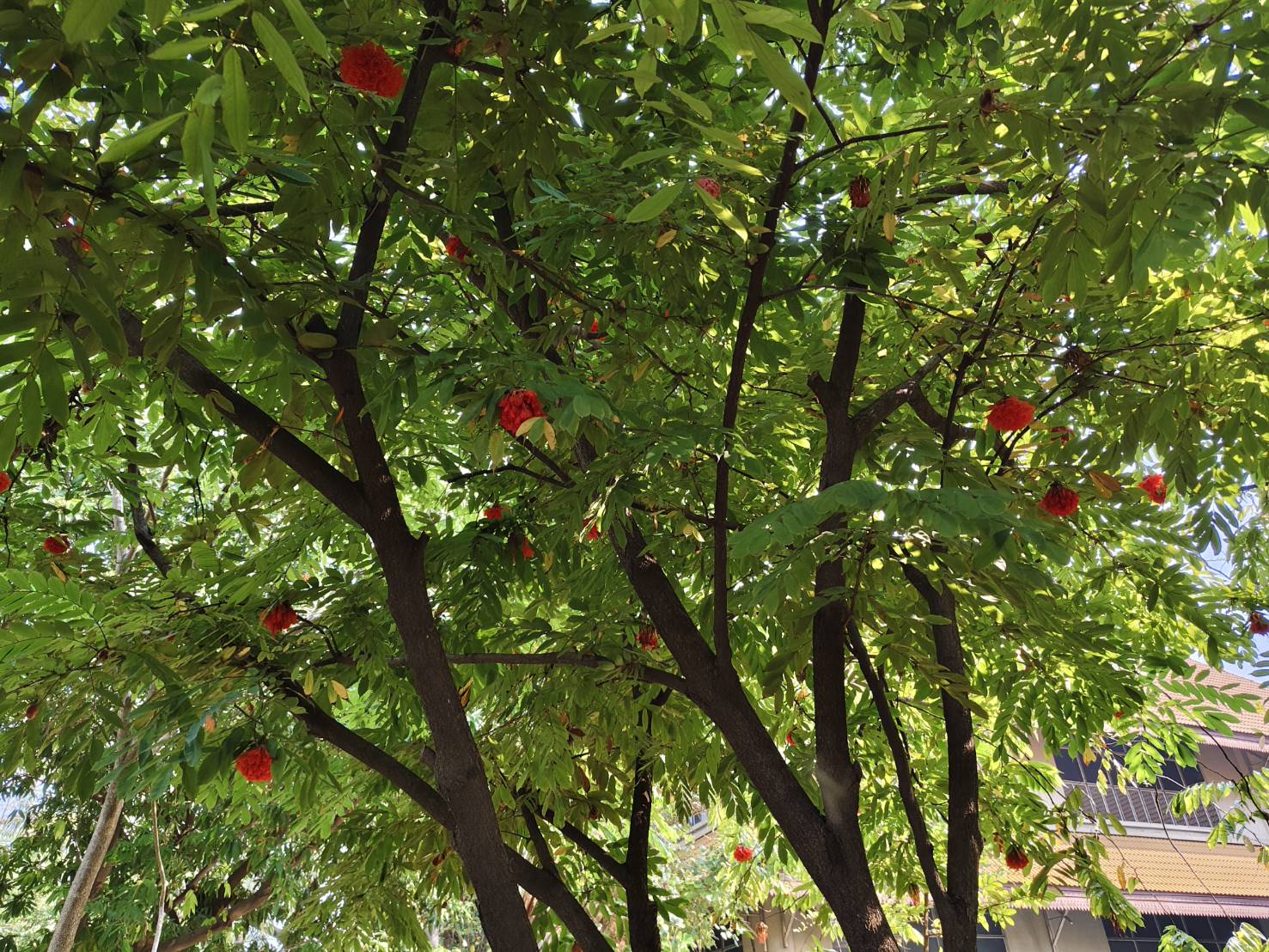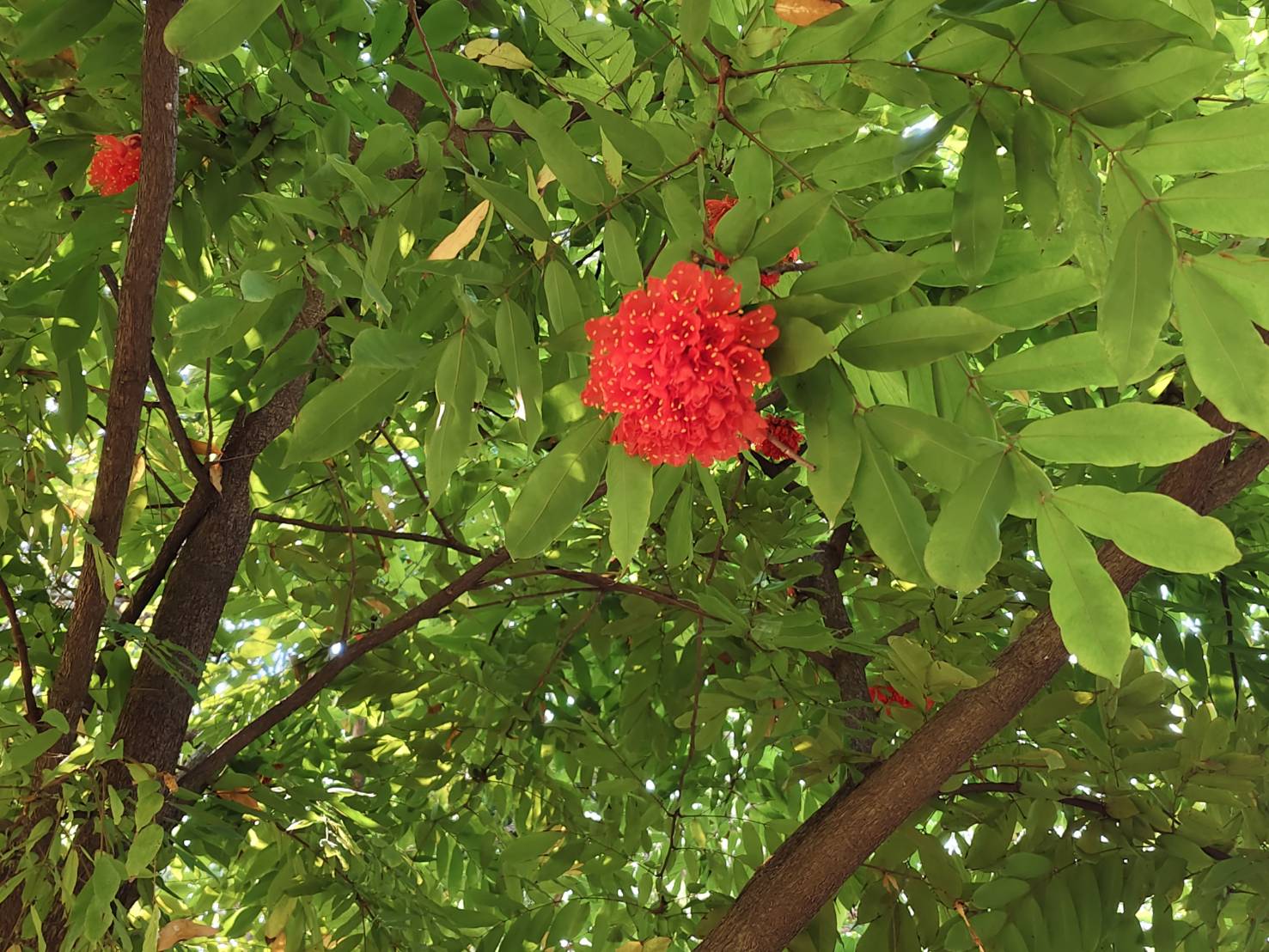 | ลักษณะดอก | ออกดอกเป็นช่อแบบกระจุกกลมแน่นที่ปลายกิ่ง ดอกสีแดง ช่อดอกห้อยคว่ำลง ดอกย่อยจำนวนมาก โคนกลีบดอกย่อยเชื่อมติดกันเป็นหลอด กว้าง1-1.5 เซนติเมตร ยาว 3-435 เซนติเมตร ดอกบานเต็มที่ กว้างประมาณ 8 เซนติเมตร |