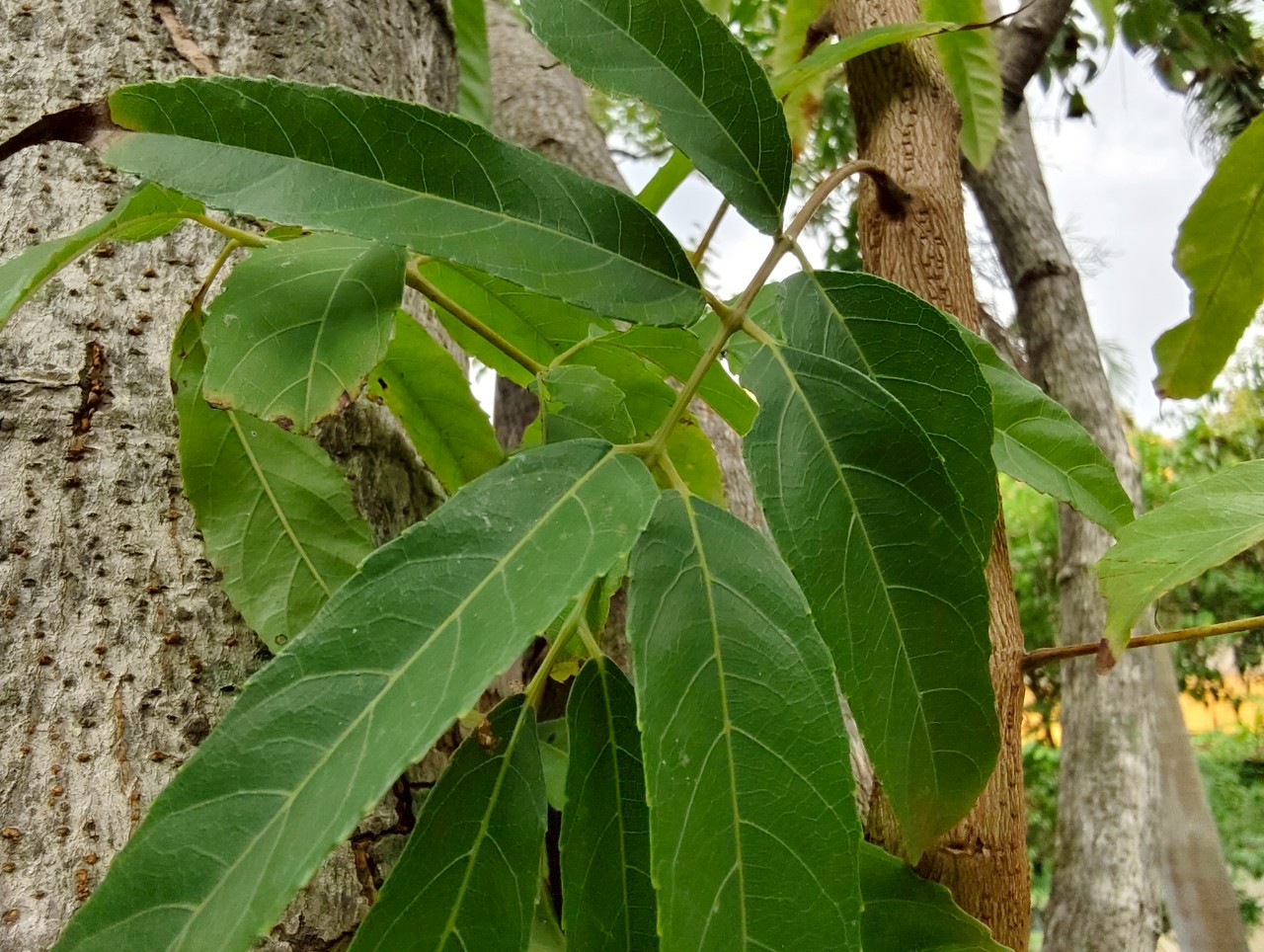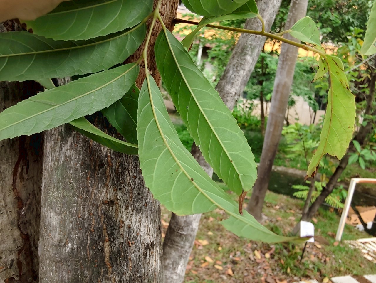 | ลักษณะใบ | ใบเป็นใบประกอบแบบนิ้วมือ อยู่เรียงตรงข้ามสลับตั้งฉาก ใบย่อยมี 3-5 ใบ ใบมีสีเขียวเข้ม ลักษณะคล้ายรูปไข่กลับ หรือรูปรีแกมรูปไข่กลับ ใบมีขนาดไม่เท่ากัน ปลายใบแหลมเป็นติ่ง โคนใบสอบแหลมหรือมน ผิวใบด้านบนเกลี้ยง มีลีเขียวเข้มเป็นมัน ท้องใบสีอ่อนกว่า และมีขนสั้นประปราย |