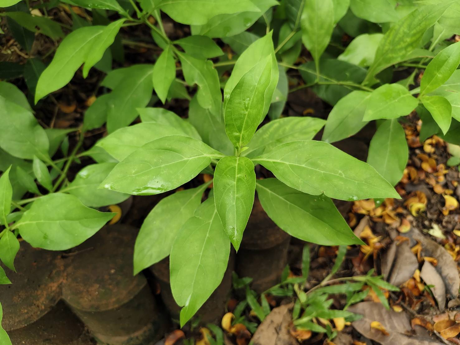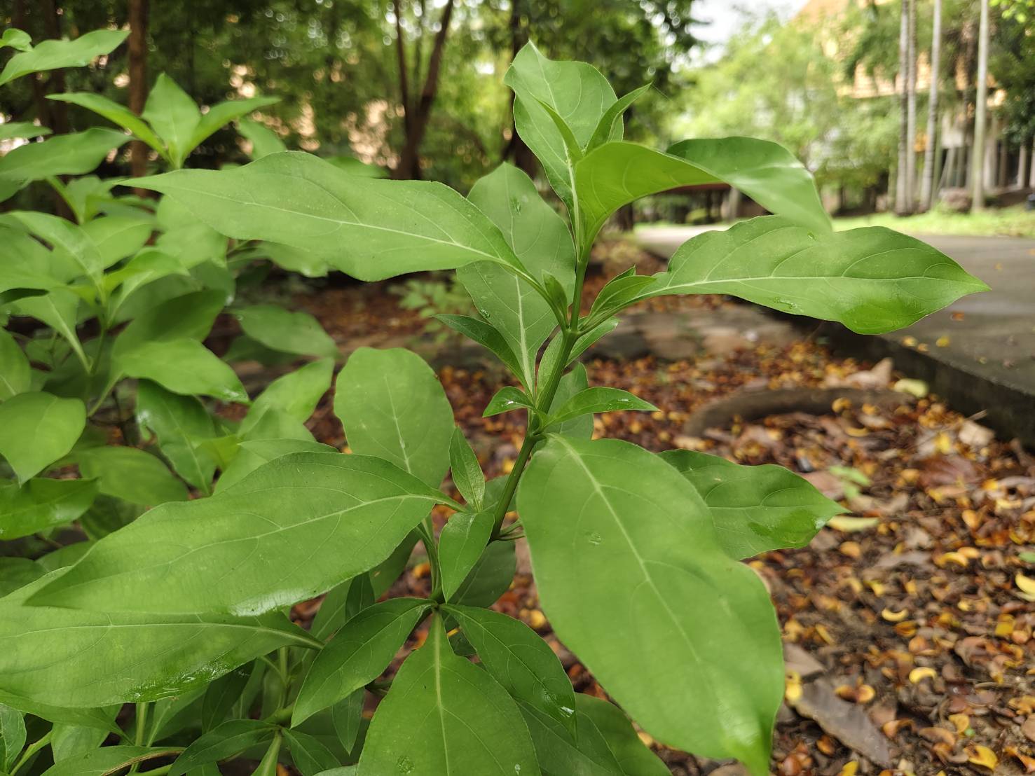 | ลักษณะใบ | ใบเป็นใบเดี่ยว ออกเรียงตรงข้ามกัน ใบเป็นรูปรี รูปไข่หรือรูปขอบขนาน ยาวประมาณ 4-12 เซนติเมตร ปลายใบแหลม โคนใบเรียวสอบจรดกับก้านใบ ปลายมีติ่งแหลม ขอบใบมีขนแข็ง แผ่นใบมีขนสั้นนุ่มกระจายอยู่ด้านล่าง |
