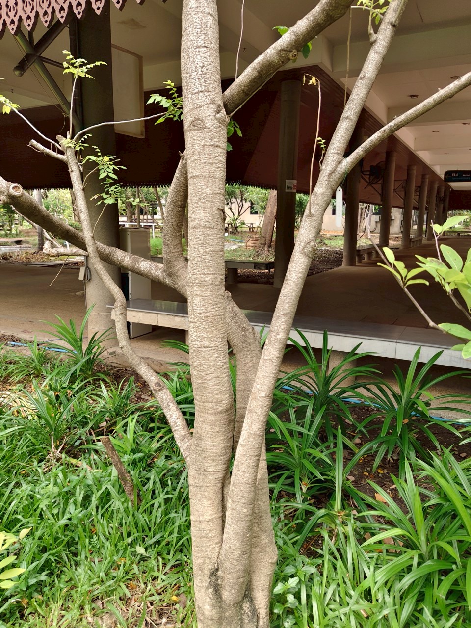 | ลักษณะวิสัย | เป็นไม้ยืนต้นขนาดกลาง สูงได้ประมาณ 8-20 เมตร แตกกิ่งก้านเป็นพุ่มกลม ลำต้นมีขนาดเท่าต้นมะพร้าวหรือใหญ่กว่า เปลือกลำต้นเรียบเป็นสีน้ำตาลอ่อนหรือเป็นสีหม่น ๆ และมีด่างเป็นดวงขาว ๆ ทั่วไปตามลำต้น ส่วนกิ่งนั้นเป็นสีเขียว |