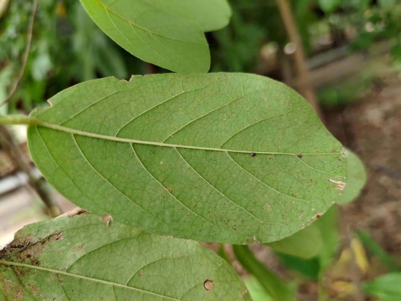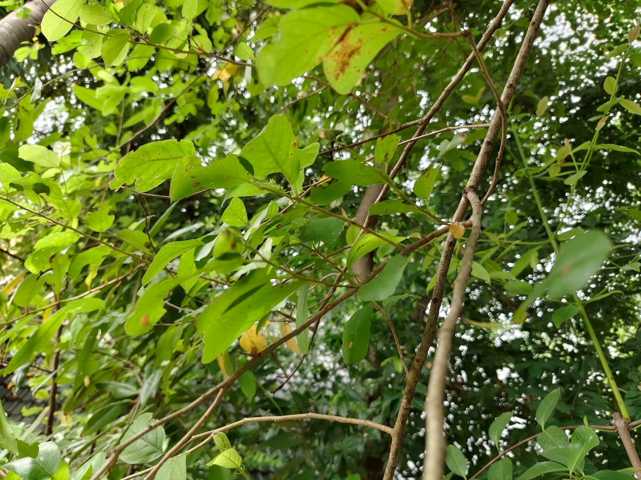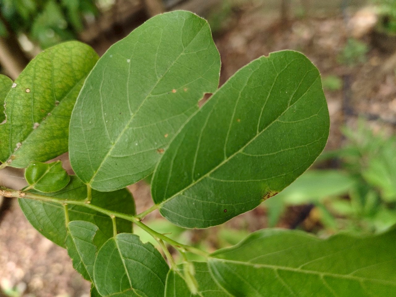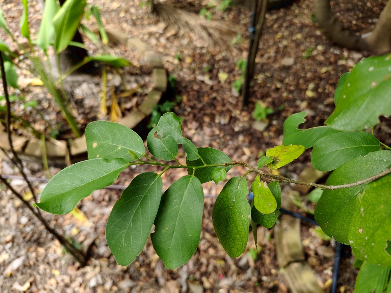 | ลักษณะใบ | ใบเป็นใบเดี่ยว ออกเรียงสลับในระนาบเดียวกัน ใบเป็นรูปรีค่อนข้างกลม หรือรูปรีแกมขอบขนาน หรือรูปไข่กว้างถึงรี ปลายใบมนกลมหรือเป็นติ่งแหลมเล็กน้อย โคนใบมนกลมถึงหยักเว้า ขอบใบเรียบ ใบกว้างประมาณ 2-5 เซนติเมตร ยาวประมาณ 4-10 เซนติเมตร หลังใบและท้องใบเรียบเกลี้ยง มีขนตามเส้นใบด้านท้องใบ ก้านใบยาวประมาณ 0.2-1.2 เซนติเมตร หูใบเป็นรูปลิ่มแคบ ร่วงง่าย |